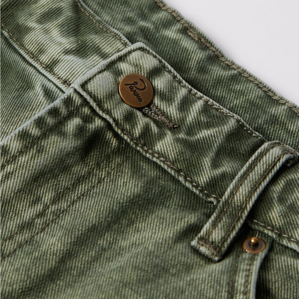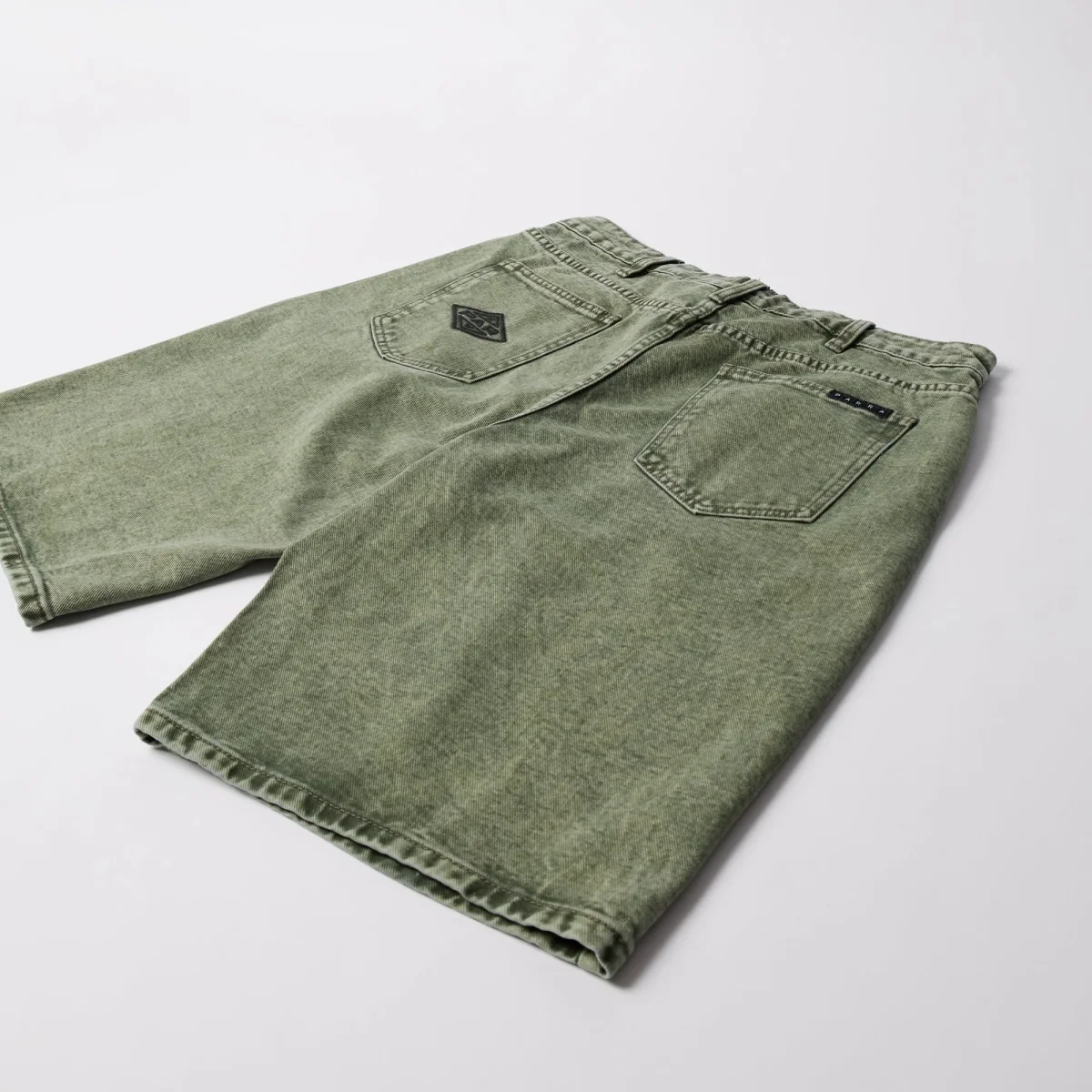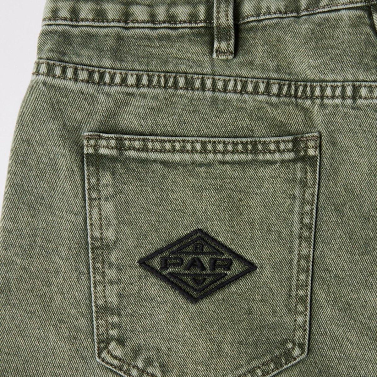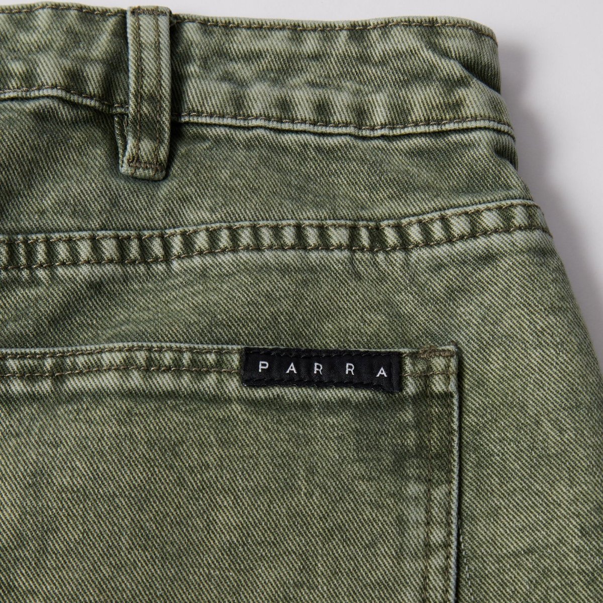 Short Parra fabriqué en toile de jean délavée. Coupe 5 poches ample qui arrive aux genoux. Multiples broderie reprenant visuels et logos Parra.