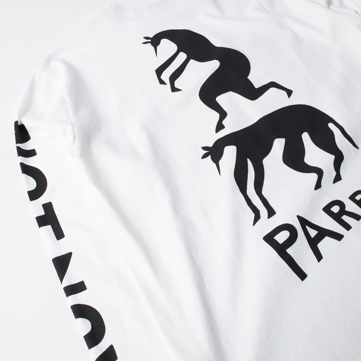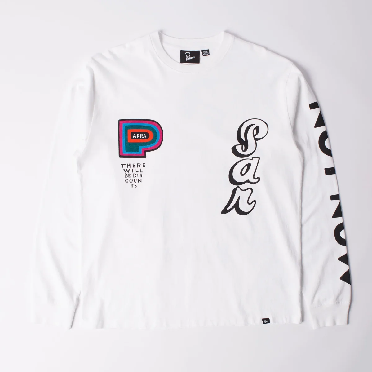 T-shirt Parra manches longue, coupe classique, avec visuel de l’artiste sérigraphié sur le devant. Petit patch avec logo Parra sur l’ourlet bas.