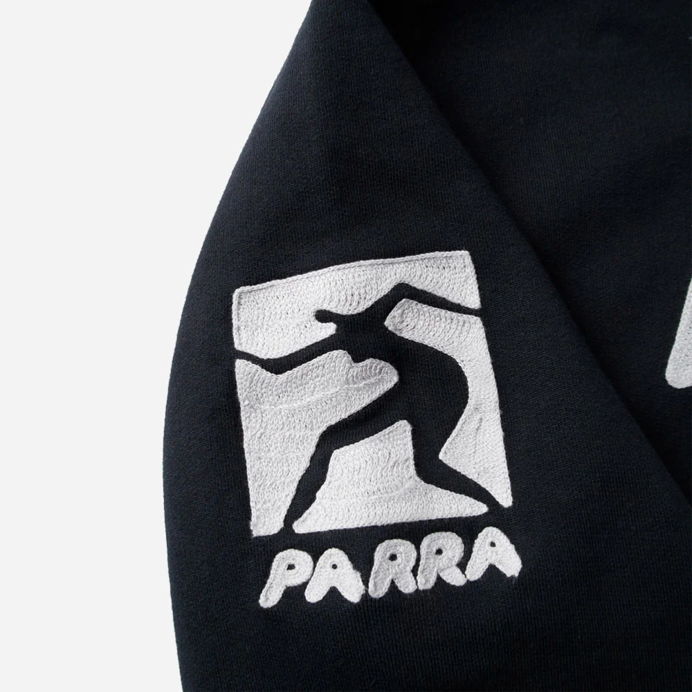 Sweat à capuche Parra coupe classique, avec logos Parra brodé sur la poitrine les manches et le dos.