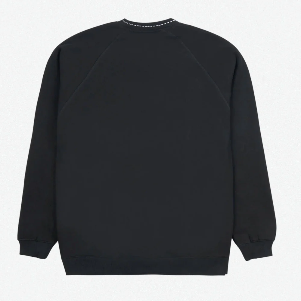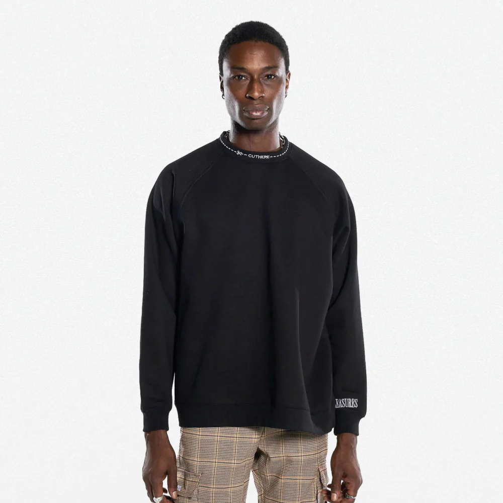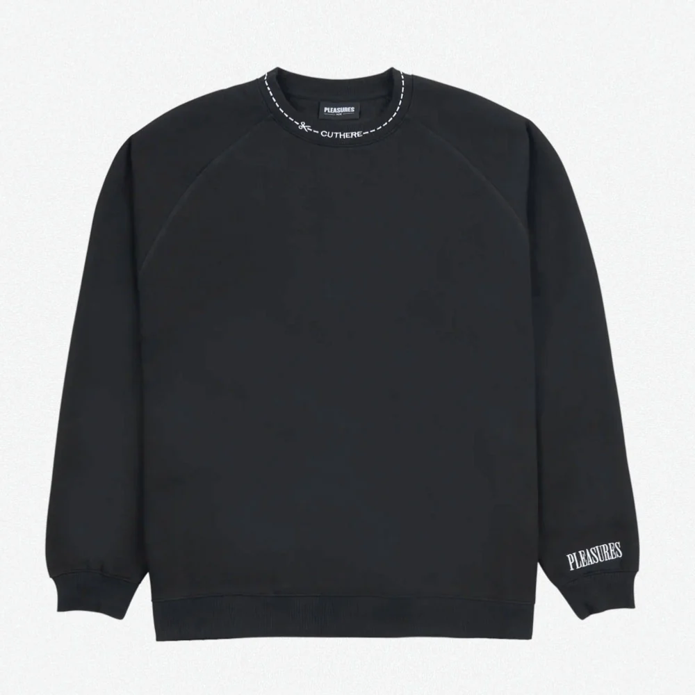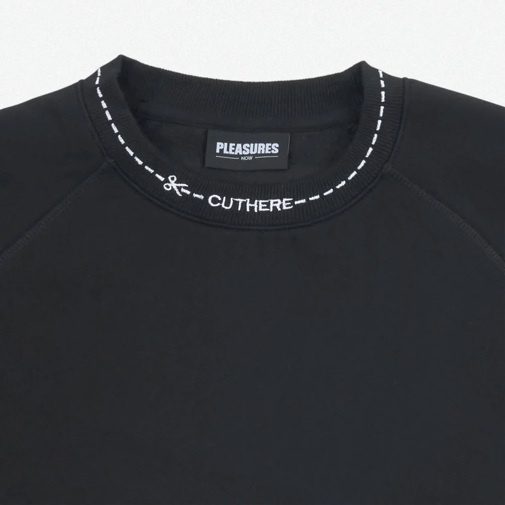 PLEASURES – CUT HERE RAGLAN CREWNECK – BLACK