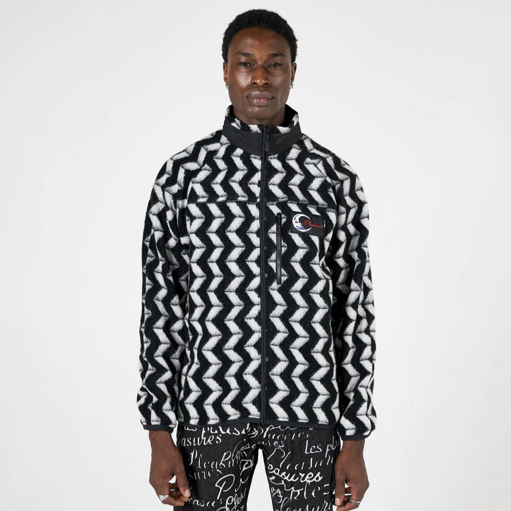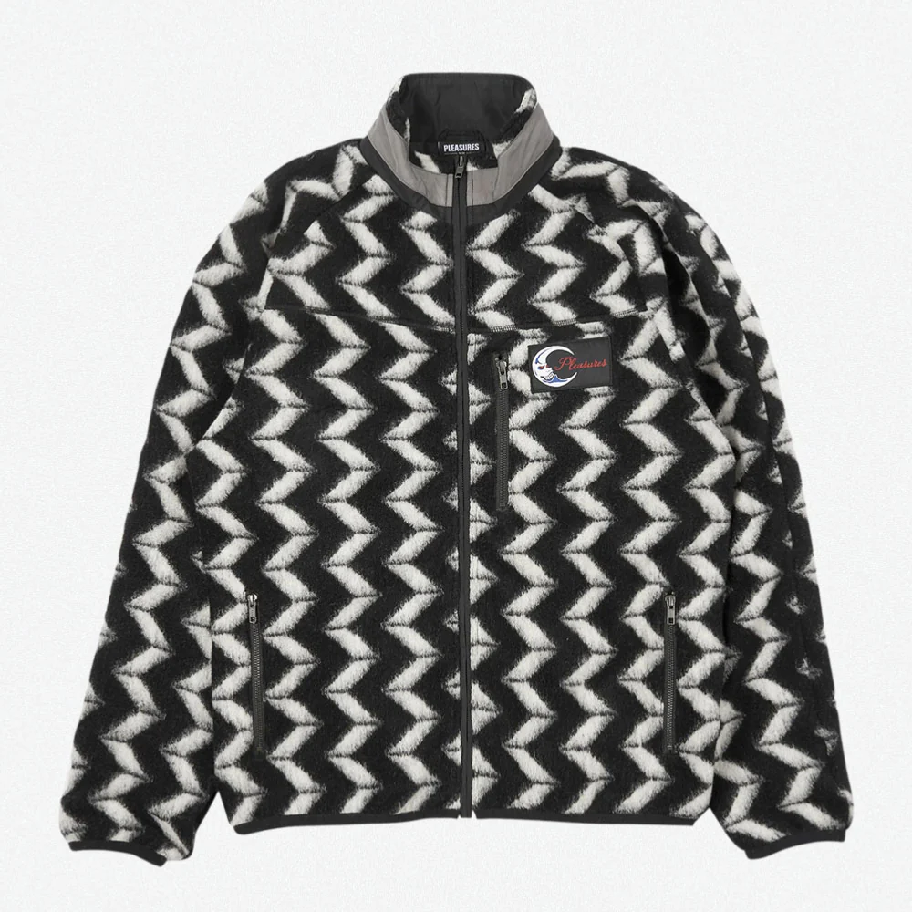 Veste zippée Pleasures à motif vintage avec doublure en nylon. Poches frontales zippées et col renforcé en nylon. Étiquette logo sur le devant et coupe décontracté.