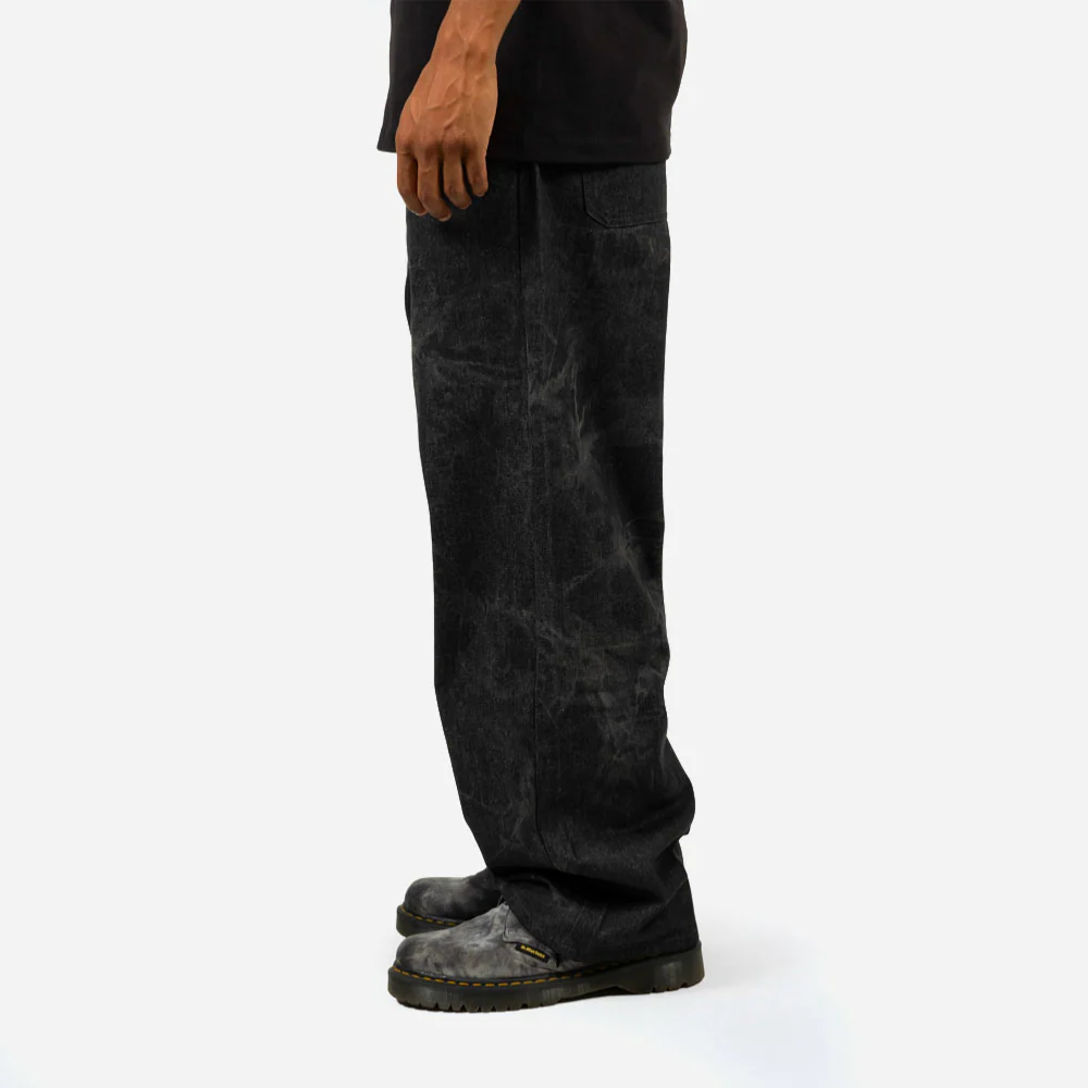 Jean Pleasures en coton Denim 12oz, coupe ample qui se resserre légèrement et poches arrières plaquées surdimensionnées, effet Tie Dye ton-sur-ton, fermeture par bouton et braguette, écusson en cuir à la taille.Voir tout PLEASURES - #CARACTÉRISTIQUES#