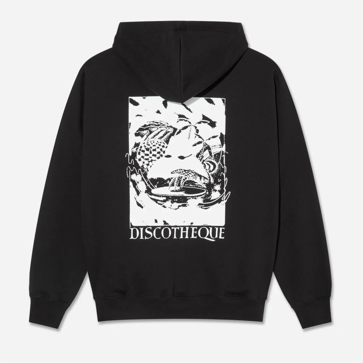 Le Polar Dave Hoodie Discotheque est fabriqué en tissu douillet avec un intérieur brossé. Il est doté d’épaules tombantes élégantes, d’œillets métalliques et d’un cordon de serrage rond en coton. De plus, il possède une poche kangourou sur le devant pour plus de commodité. Ce sweat à capuche a une coupe décontractée et met en valeur l’imprimé artistique de Julian Smith.