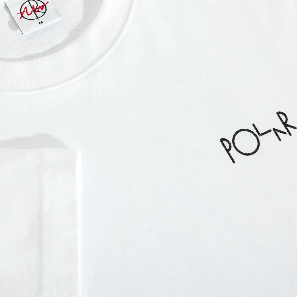 T-shirt Polar manches courte, coupe classique avec épaules légèrement tombantes et col ras du cou côtelé fabriqué dans un coton blanc épais pré-rétréci. Visuel par Pontus Alv imprimé dans le dos et logo Polar sur la poitrine.