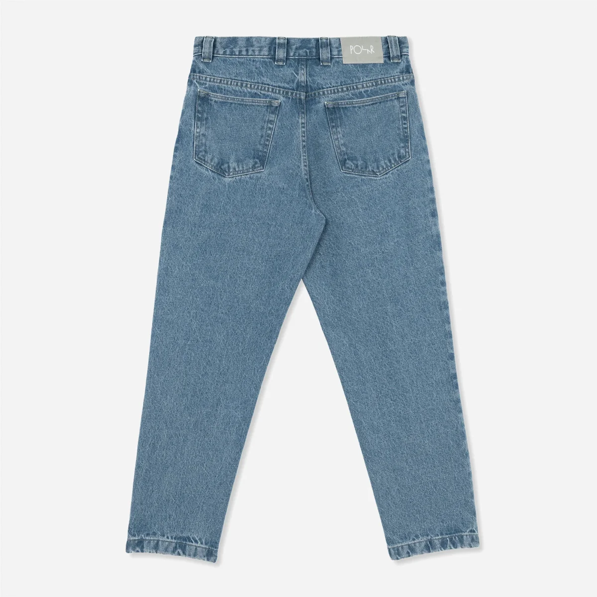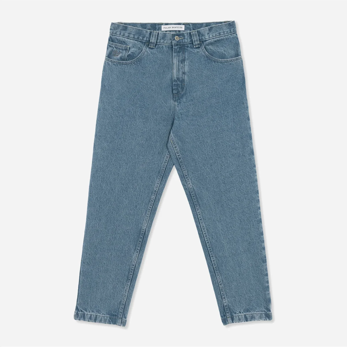 Pantalon Polar fabriqué en Europe en toile de jean 100 % coton. 435 g/m². Coupe ample avec taille basse, entrejambe tombante et jambe fuselée. Une version un peu plus étroite du modèle 93. Broderie sur la poche à monnaie et étiquette tissée à la taille.