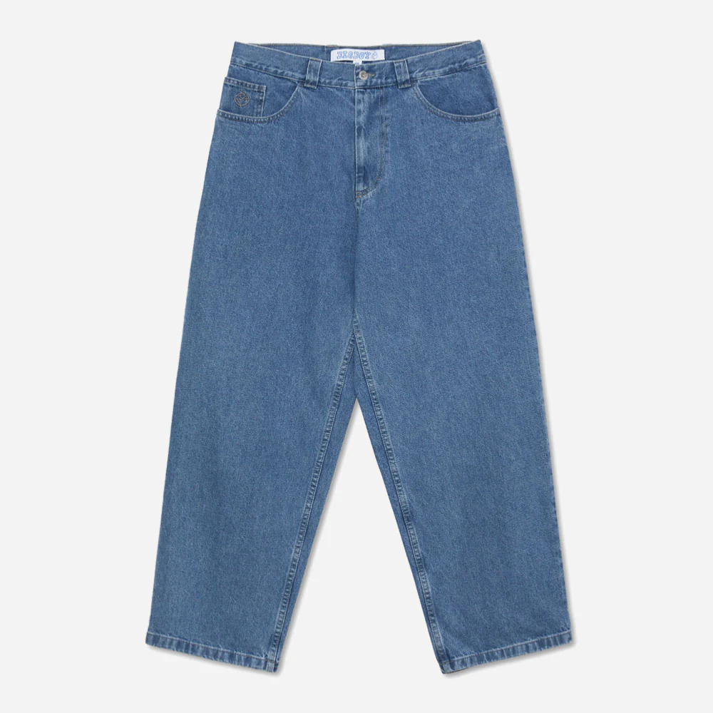 Le véritable pantalon en toile denim coupe baggy de chez Polar, le Big Boy avec sa coupe bien large et toujours cette broderie signature dans la poche avant.