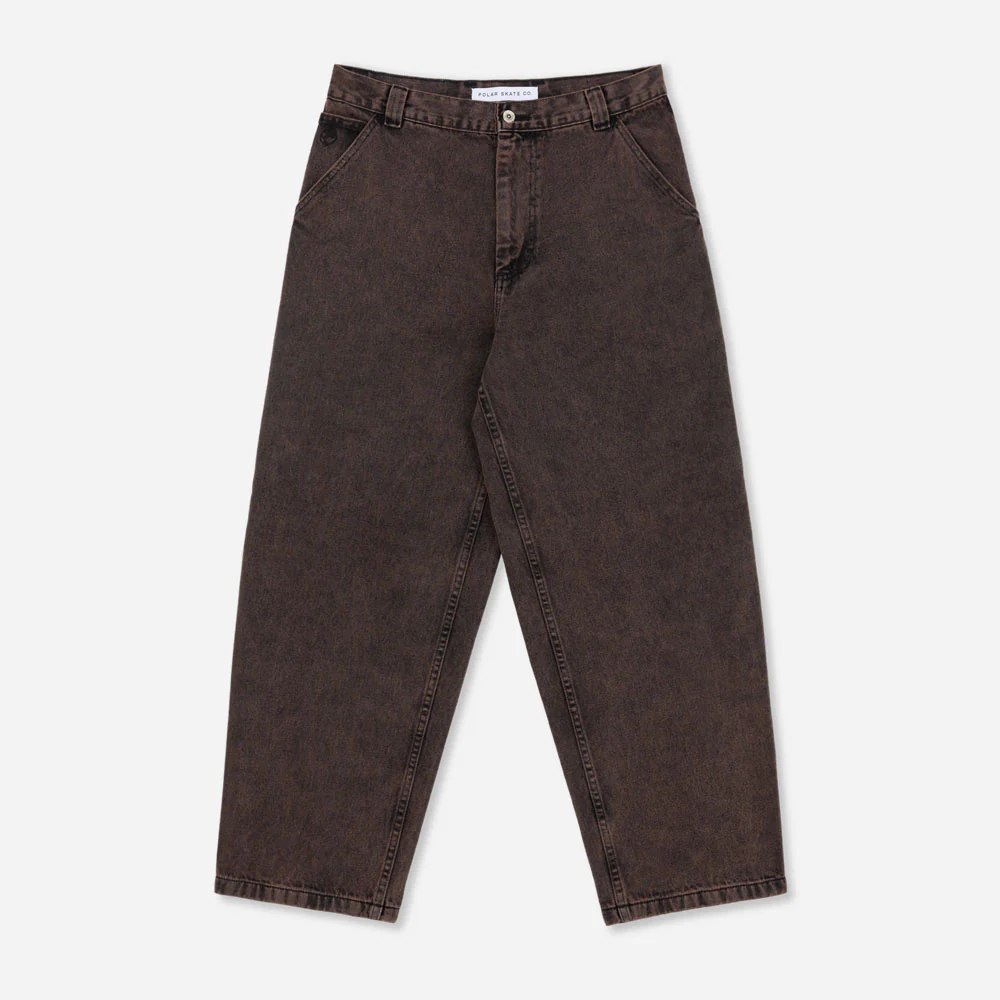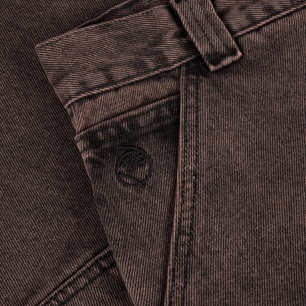 Jean en denim coupe baggy avec fermeture par boutons avec boucle pour le marteau. Broderie logo dans la poche.