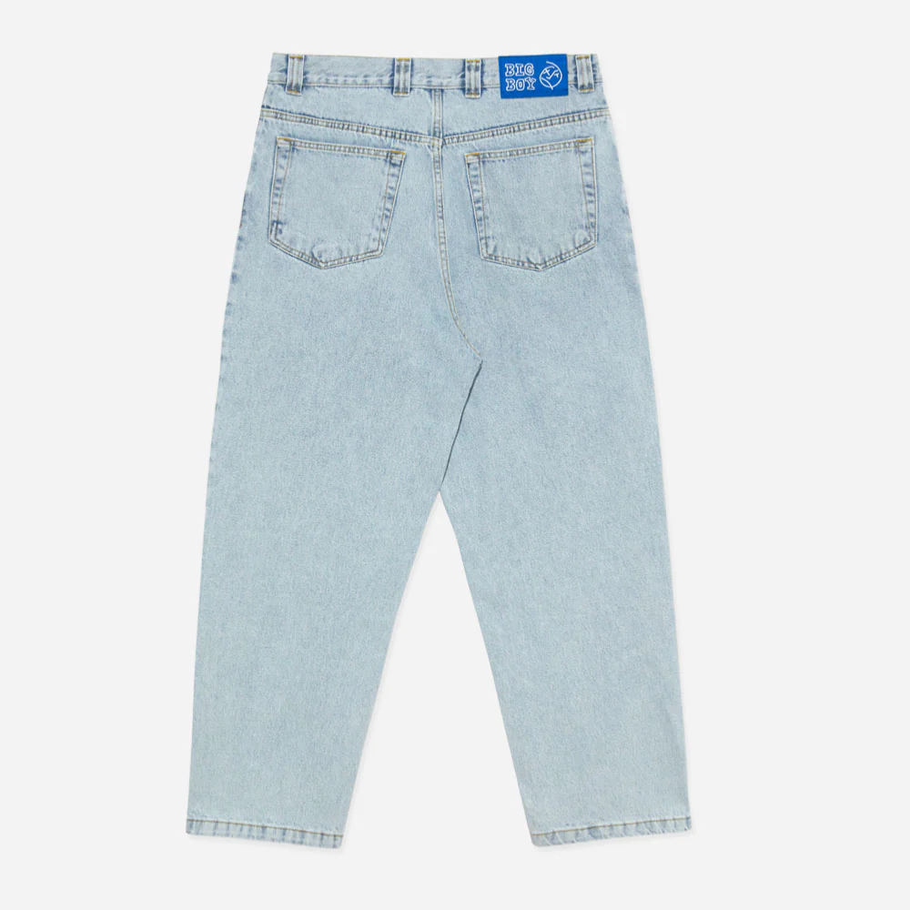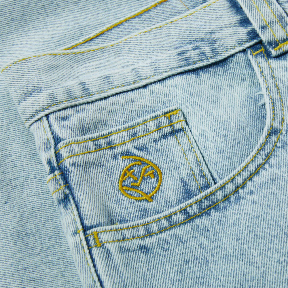 Le véritable pantalon en toile denim coupe baggy de chez Polar, le Big Boy avec sa coupe bien large et toujours cette broderie signature dans la poche avant. Ici présenté dans sa version bleu ultra-délavé.