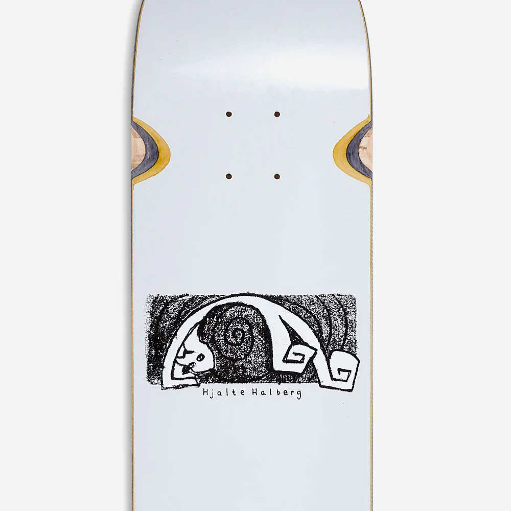 Planche Polar Skate Co. 7-plis en bois d’érable canadien et résine époxy. Shape avec passage de roue Wheel Wells. Pro-modèle de Hjalte Halberg, Visuel par Hjalte Halberg.