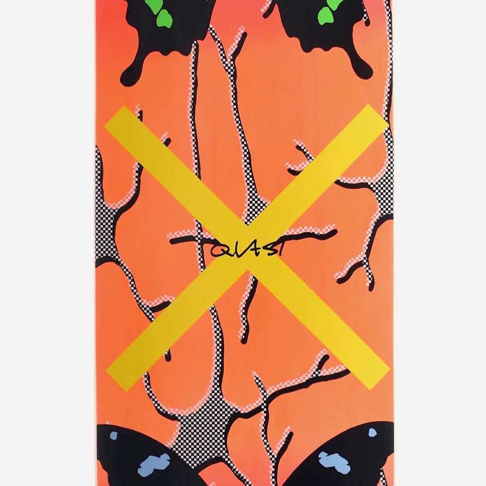 QUASI SKATEBOARDS – 1989 DECK – RedPlanche de skateboard Quasi fabriquée par Paul Schmitt en bois d’érable canadien 7-plis et résine époxy.