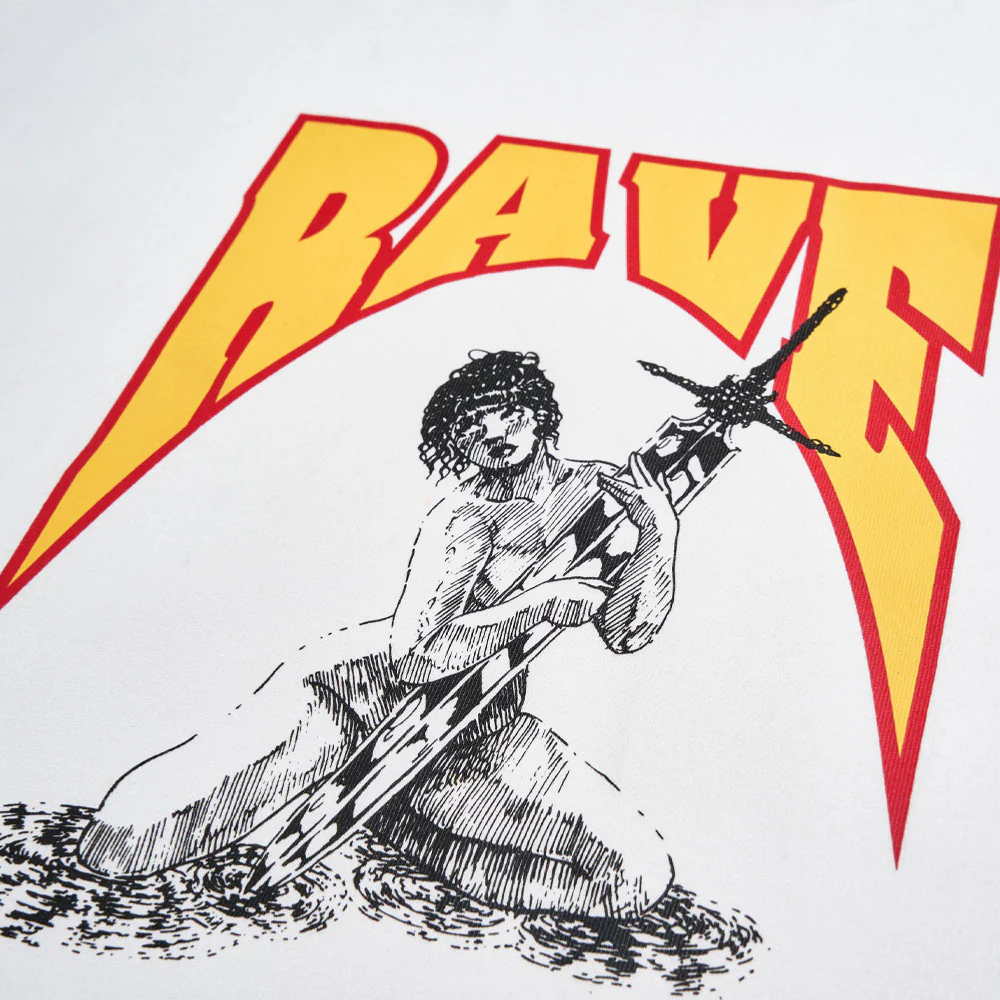 T-shirt Rave coupe ample, fabriqué en coton épais. Visuel sérigraphié sur poitrine. Logo en PVC dans le haut du dos.
