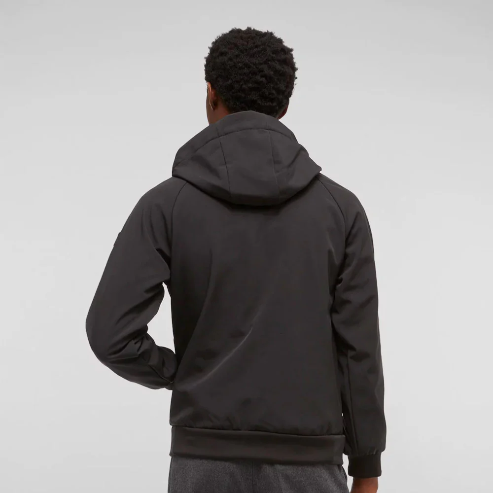 Veste bomber à capuche en matière souple type néoprène. Idéale pour une utilisation tout au long de l’année en tant que sweat-shirt ou veste. Le tissu offre de hautes performances grâce au traitement déperlant extérieur, ainsi qu’un confort unique donné par la composition légèrement extensible et les poils brossés internes qui offrent un toucher doux et agréable. Le look est moderne et épuré.
