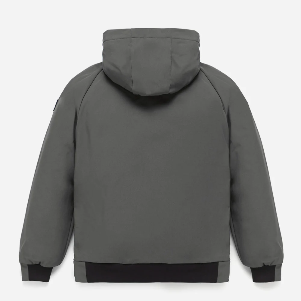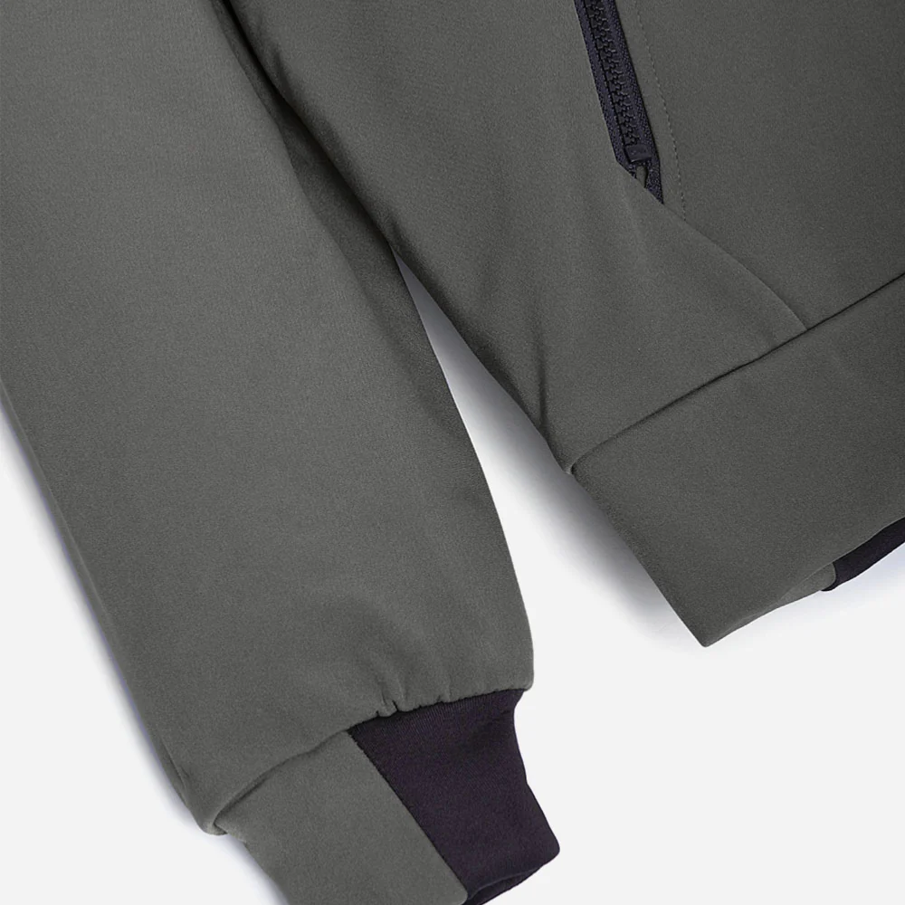 Veste bomber à capuche en matière souple type néoprène. Idéale pour une utilisation tout au long de l’année en tant que sweat-shirt ou veste. Le tissu offre de hautes performances grâce au traitement déperlant extérieur, ainsi qu’un confort unique donné par la composition légèrement extensible et les poils brossés internes qui offrent un toucher doux et agréable. Le look est moderne et épuré.