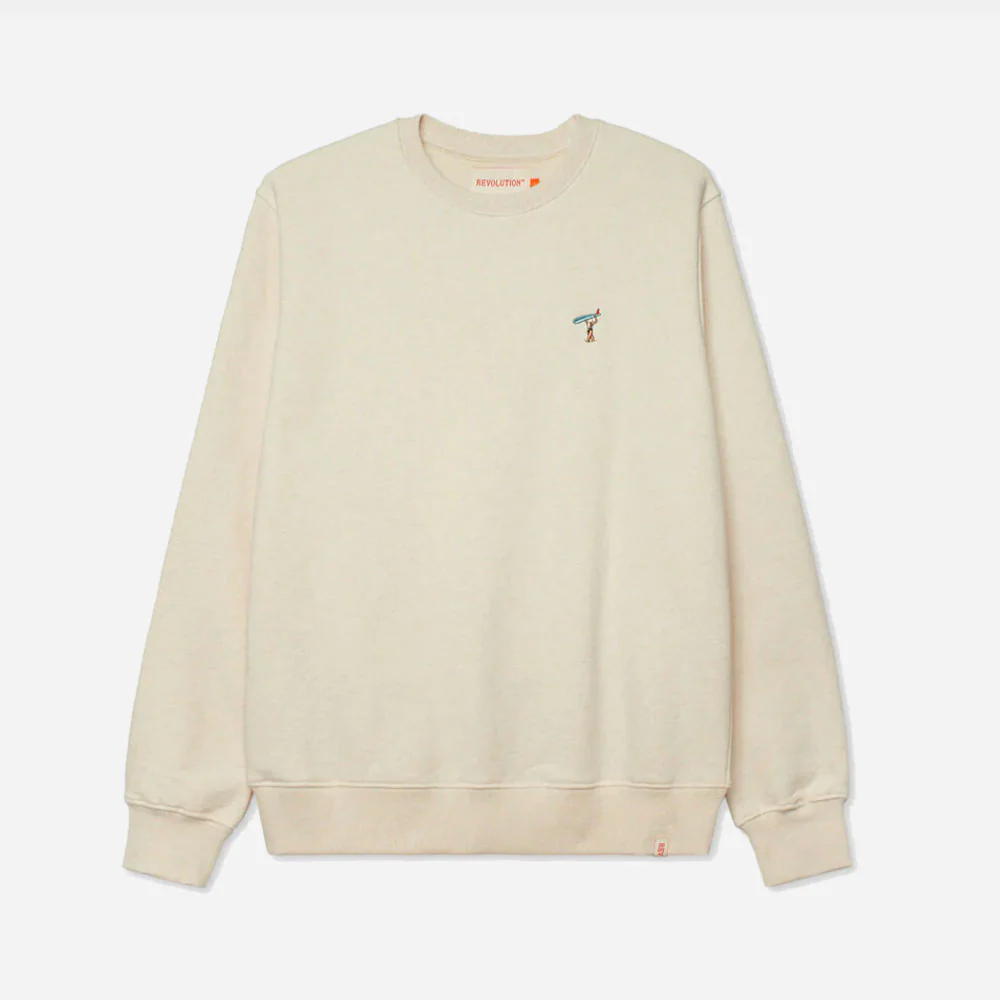 REVOLUTION – REGULAR CREWNECK SURF GIRL – Offwhite melange