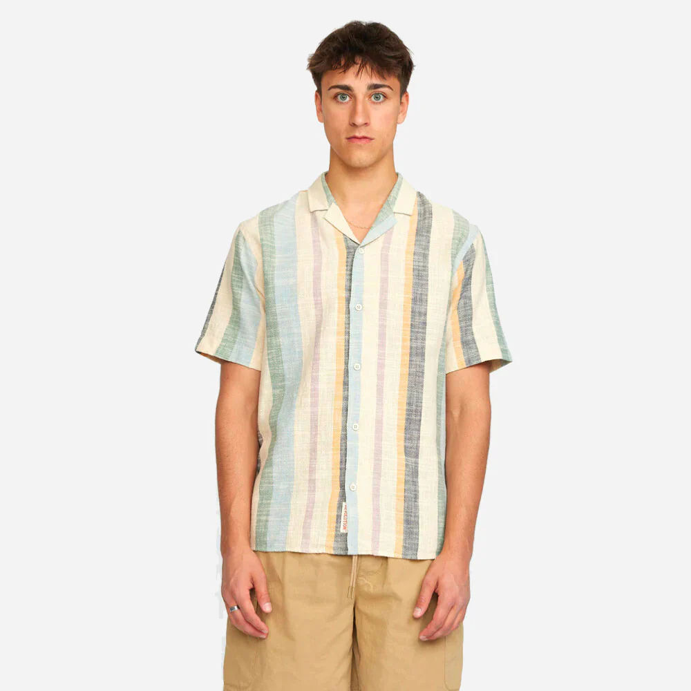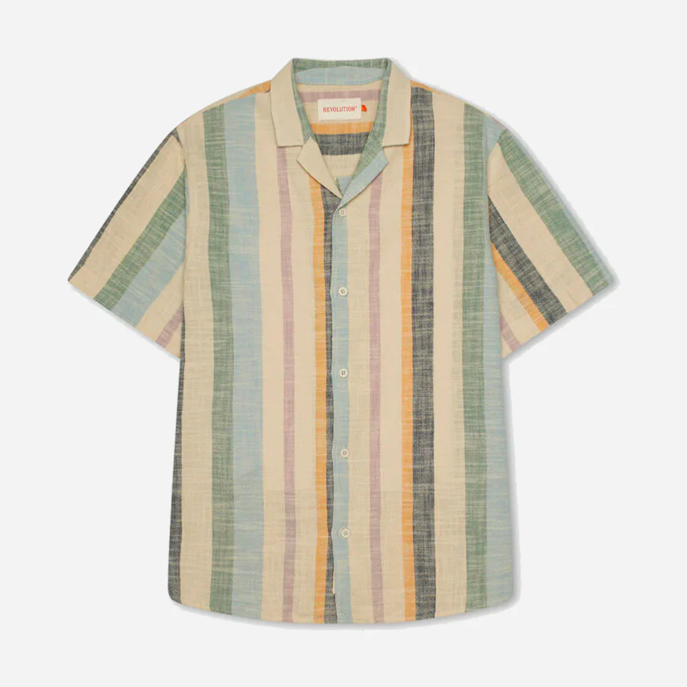 REVOLUTION – REGULAR SHORT SLEEVED CUBAN SHIRT – Dustgreen
