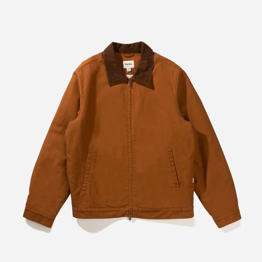 La veste James, notre incontournable de Rhythm, dégage un charme désuet. Fabriquée en toile de coton lavée vintage, elle présente un col en velours côtelé contrasté et une doublure en sherpa. Il suffit de l’associer à un tee-shirt vintage et à un pantalon classique.