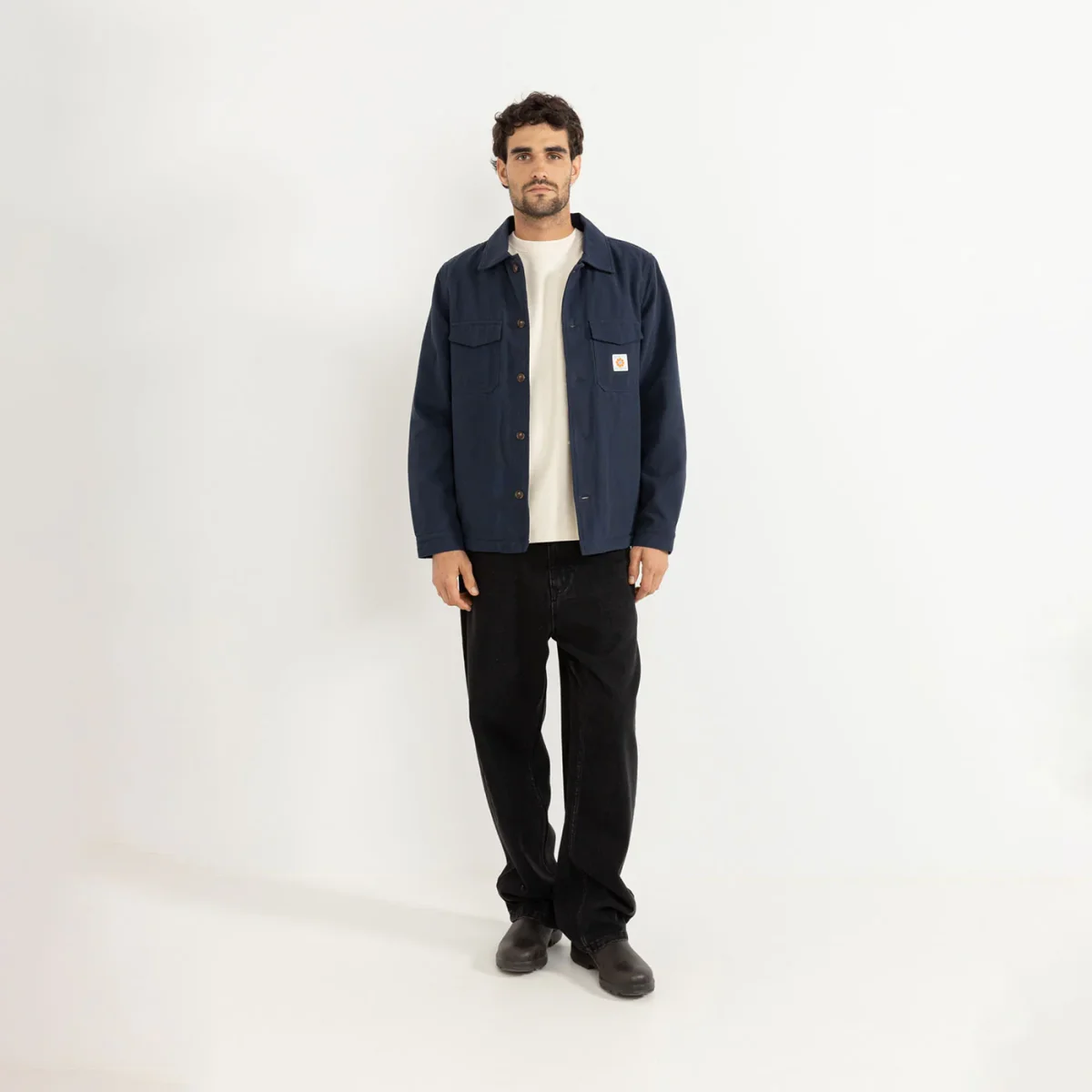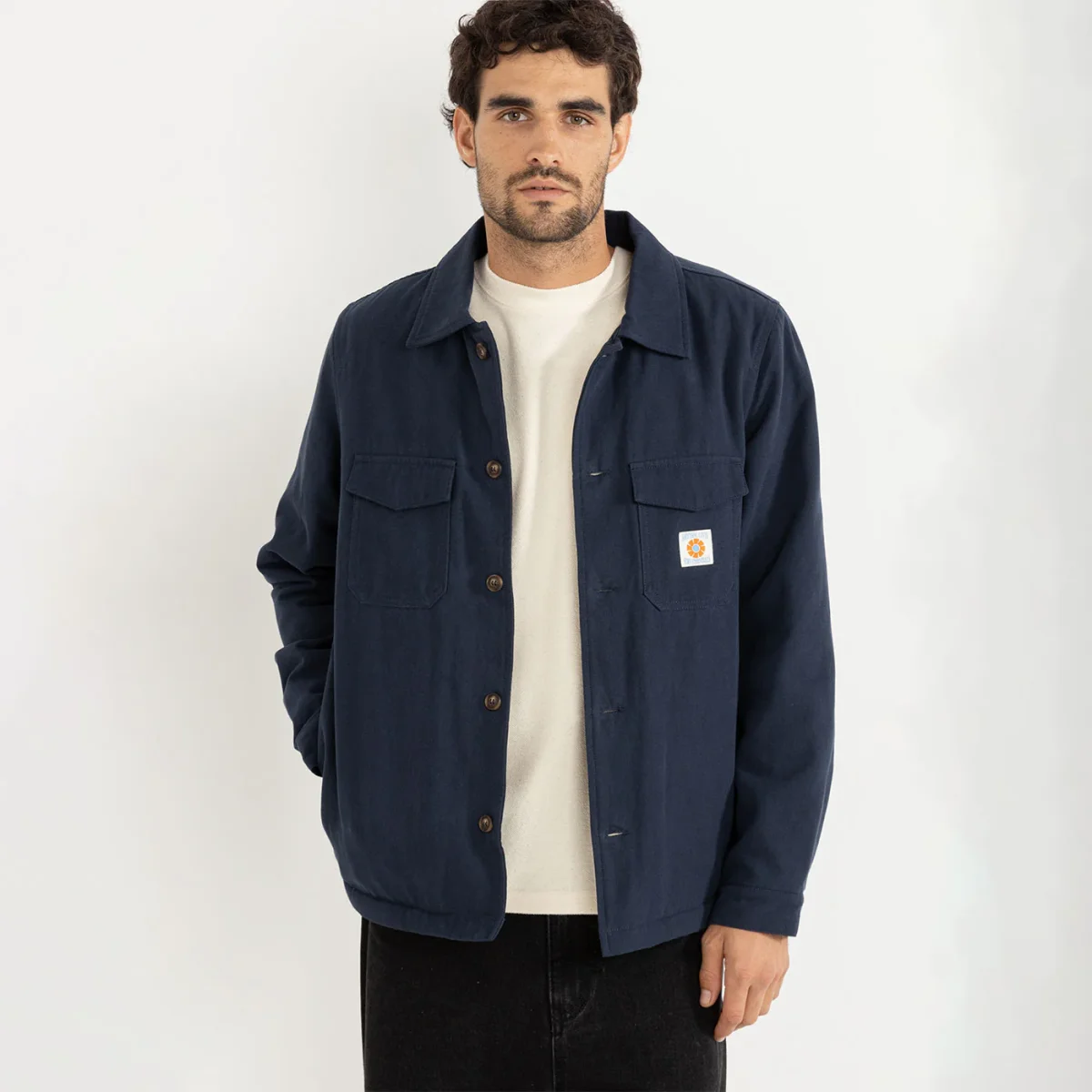 Veste Rhythm coupée comme un chemise pour un parfait look Workwear raffiné. Fabriquée en toile de coton avec doublure en sherpa, complétée par une fermeture à boutons, deux poches poitrines à rabats avec patch Rhythm cousu et deux poches latérales. A porter comme un veste de mi-saison ou en sur-chemise.
