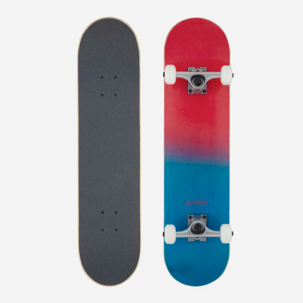 Planche de skateboard complète Rocket. Prête à l’emploi avec Trucks, roues, roulements, grip et visserie. Shape classique.