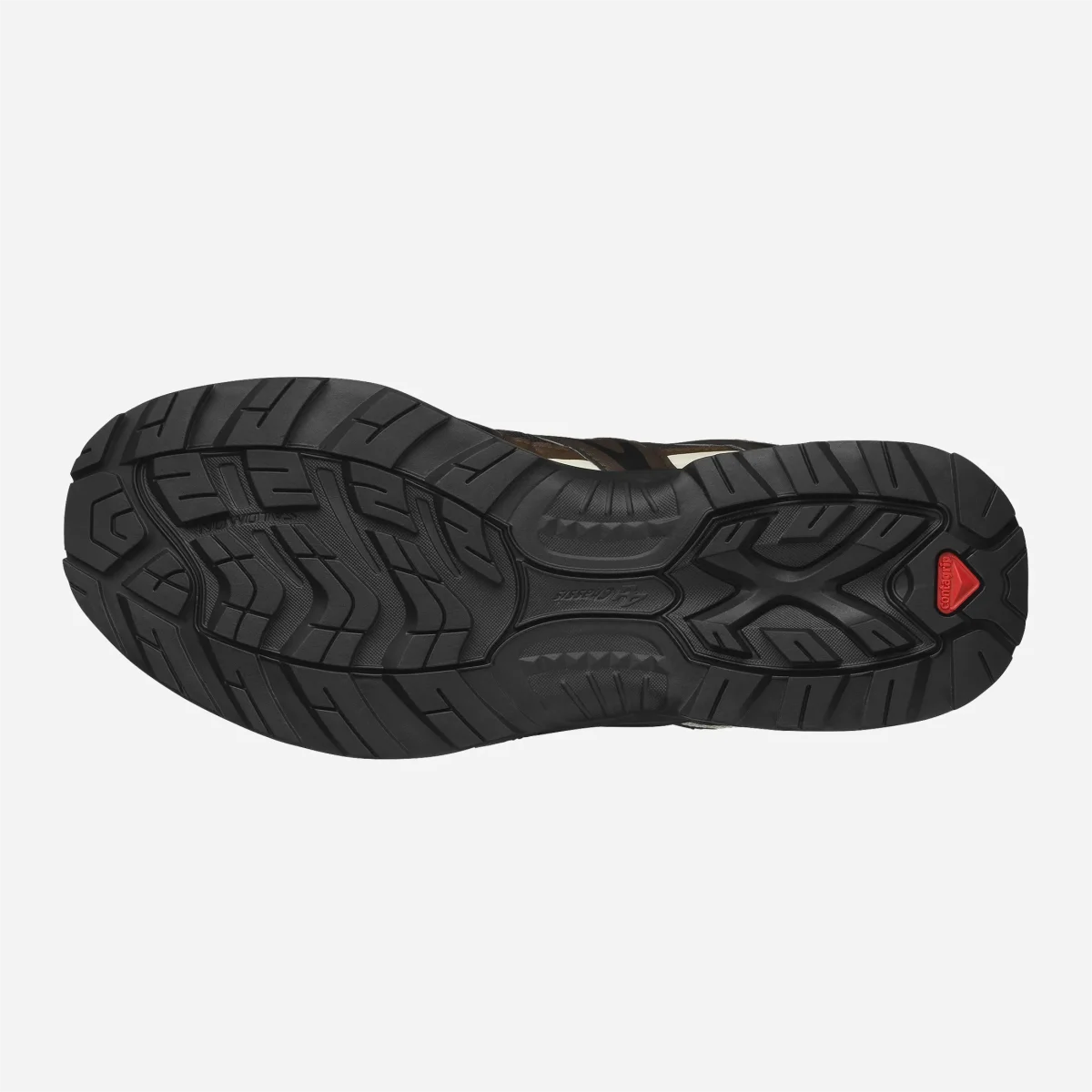 Salomon XT-QUEST GTX est la rencontre parfaite entre le design technique d’antan et les besoins urbains d’aujourd’hui. S’inspirant des modèles de randonnée légendaires de la marque, elle offre une silhouette robuste et protectrice. Dans ce coloris Black / Delicioso, elle mixe une base noire technique avec des empiècements en cuir synthétique marron riche et blanc, rehaussé de touches de vert « Green Jacket » sur la semelle.
