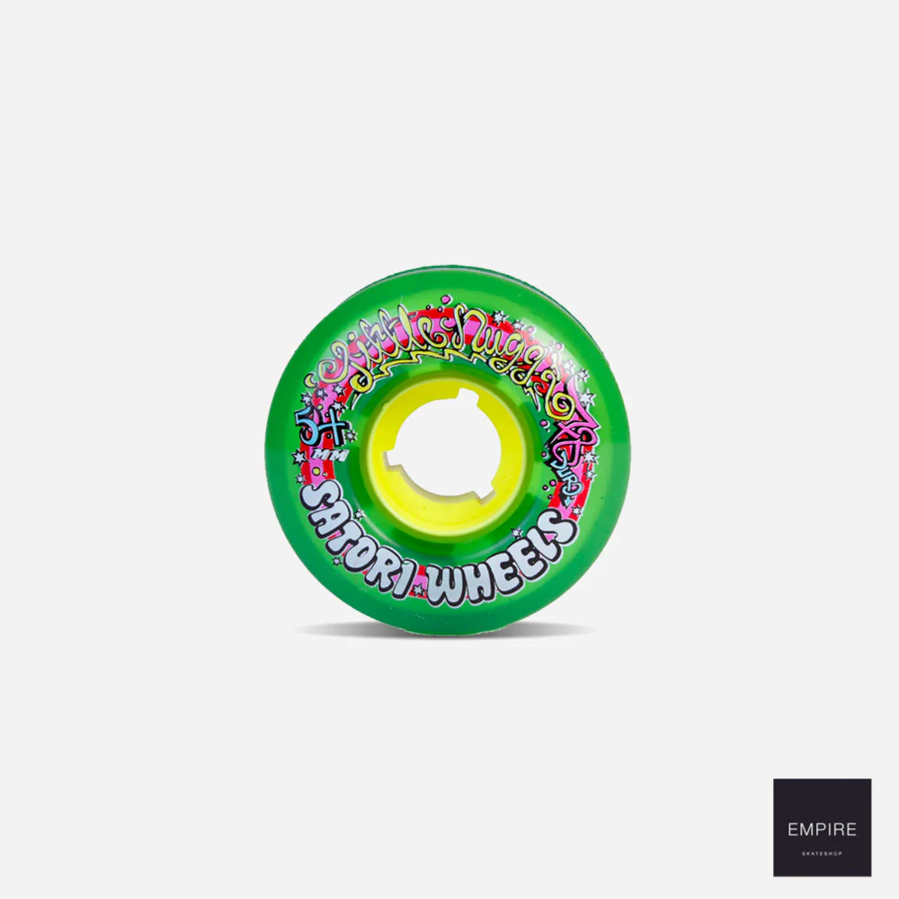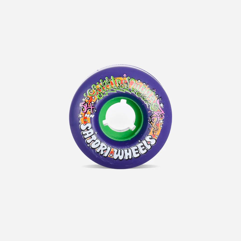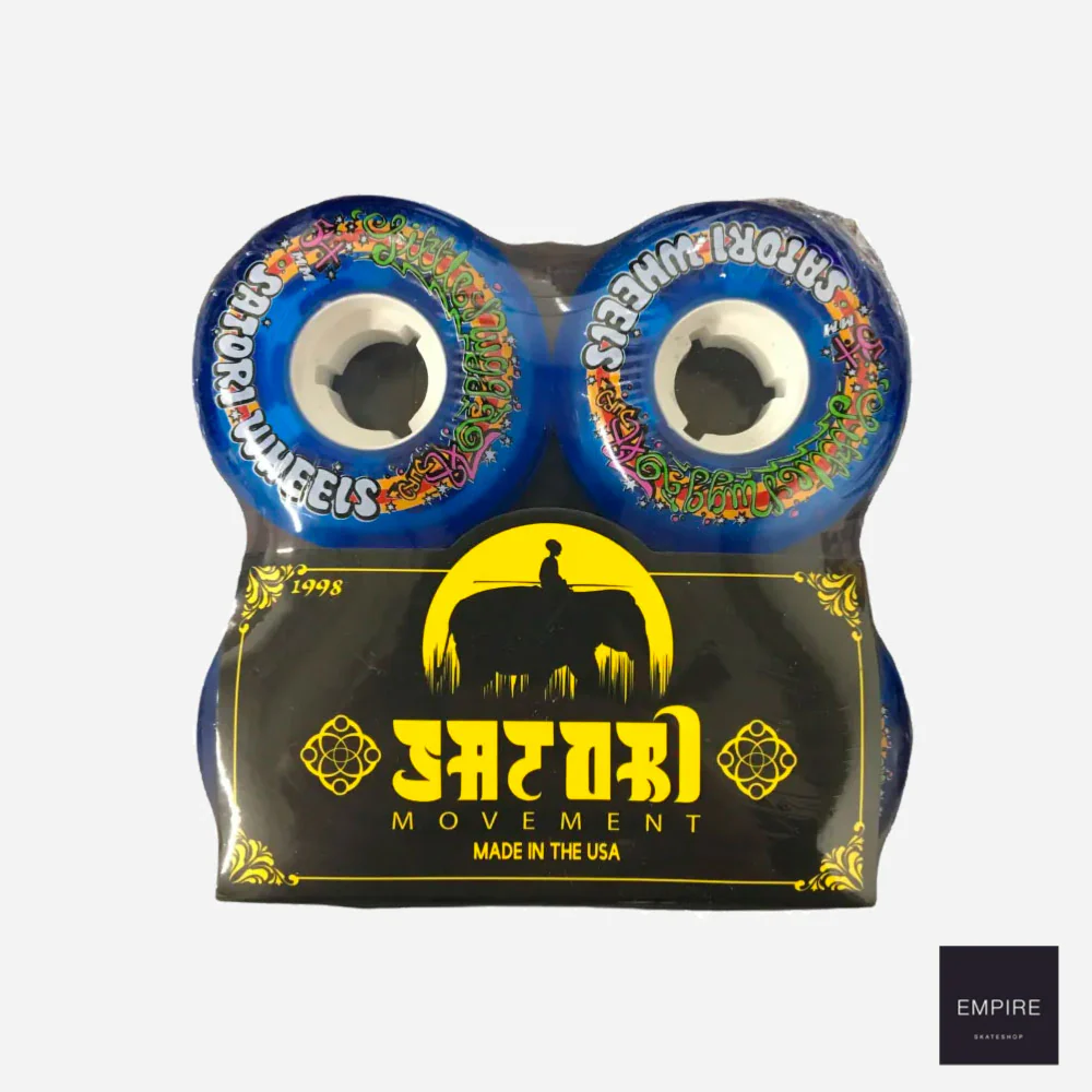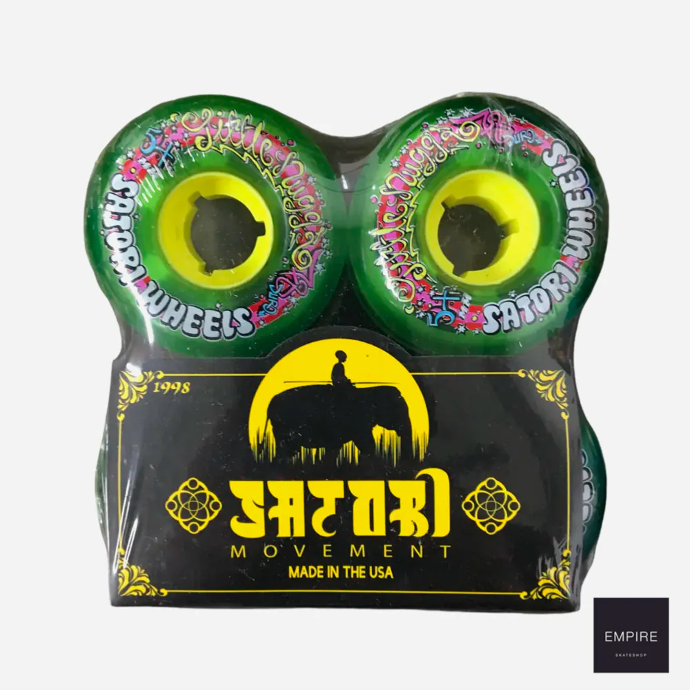 Jeu de 4 roues Satori Movement Wheels pour skateboards composées de 60% de polyuréthane recyclé, sérigraphiées sur une face. Ces roues à la dureté basse idéale pour cruiser.