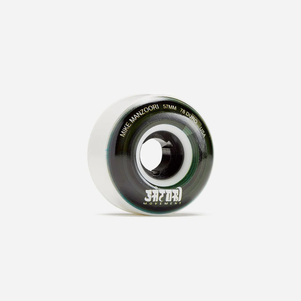 Jeu de 4 roues Satori Movement Wheels pour skateboards fabriquées en uréthane sérigraphiées sur une face. Ces roues à la dureté basse sont idéales pour cruiser.