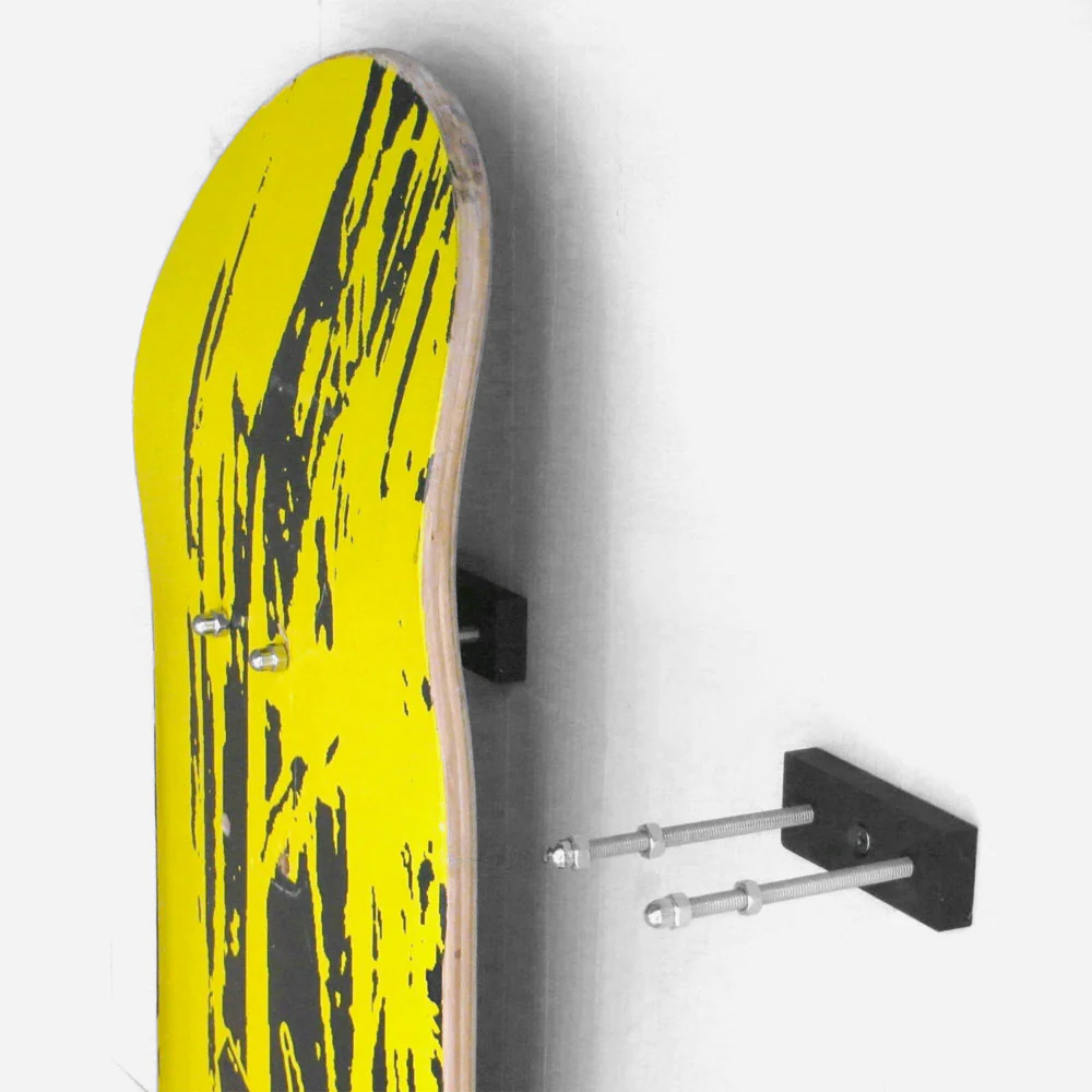 Présentoir mural flottant pour planches de skateboard, peu se positionner horizontalement ou verticalement. Livré avec vis de montage et cheville.