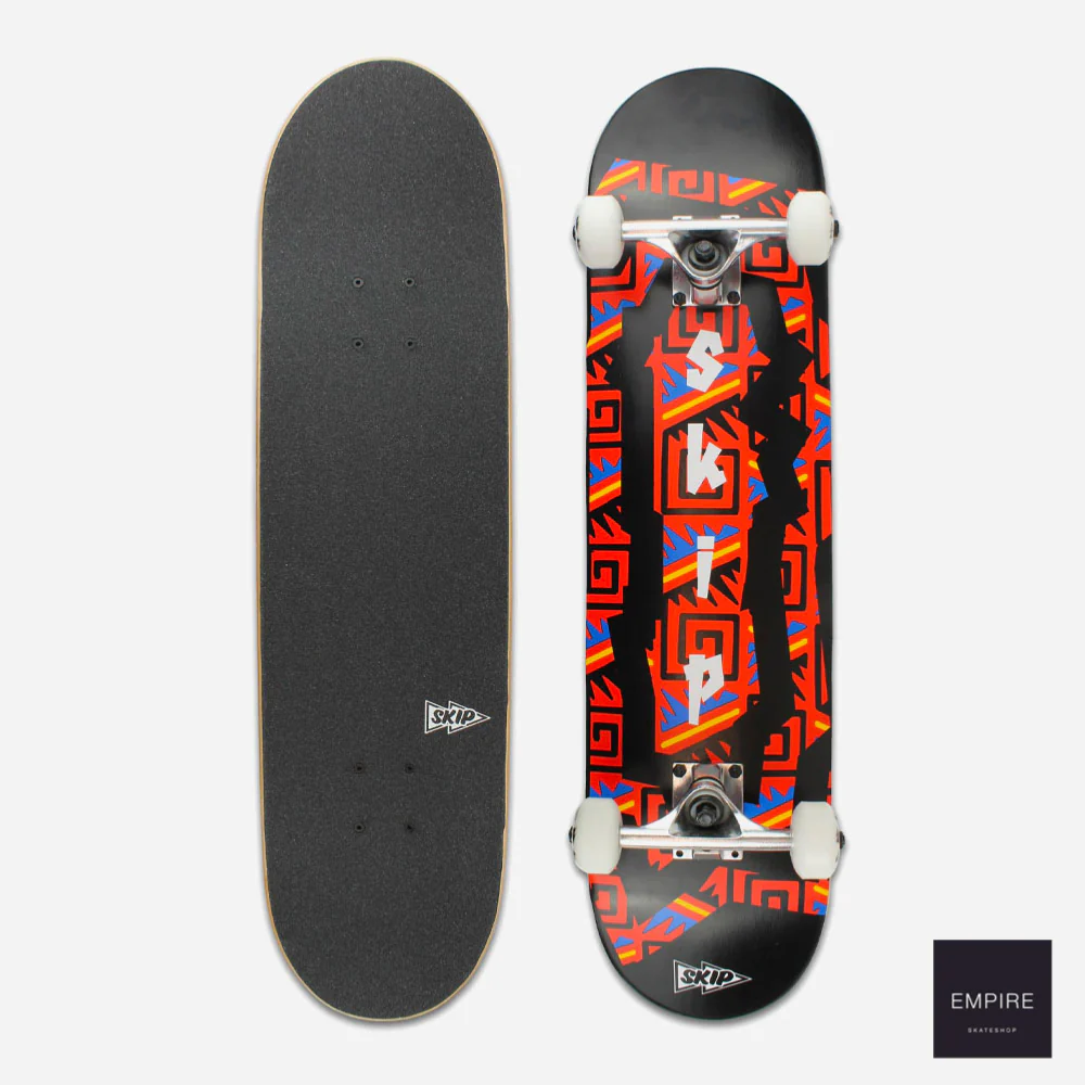 SKIP SKATEBOARDS PATTERN COMPLETE – RedPlanche de skateboard complète Skip. Prête à l’emploi avec Trucks, roues, roulements, grip et visserie.