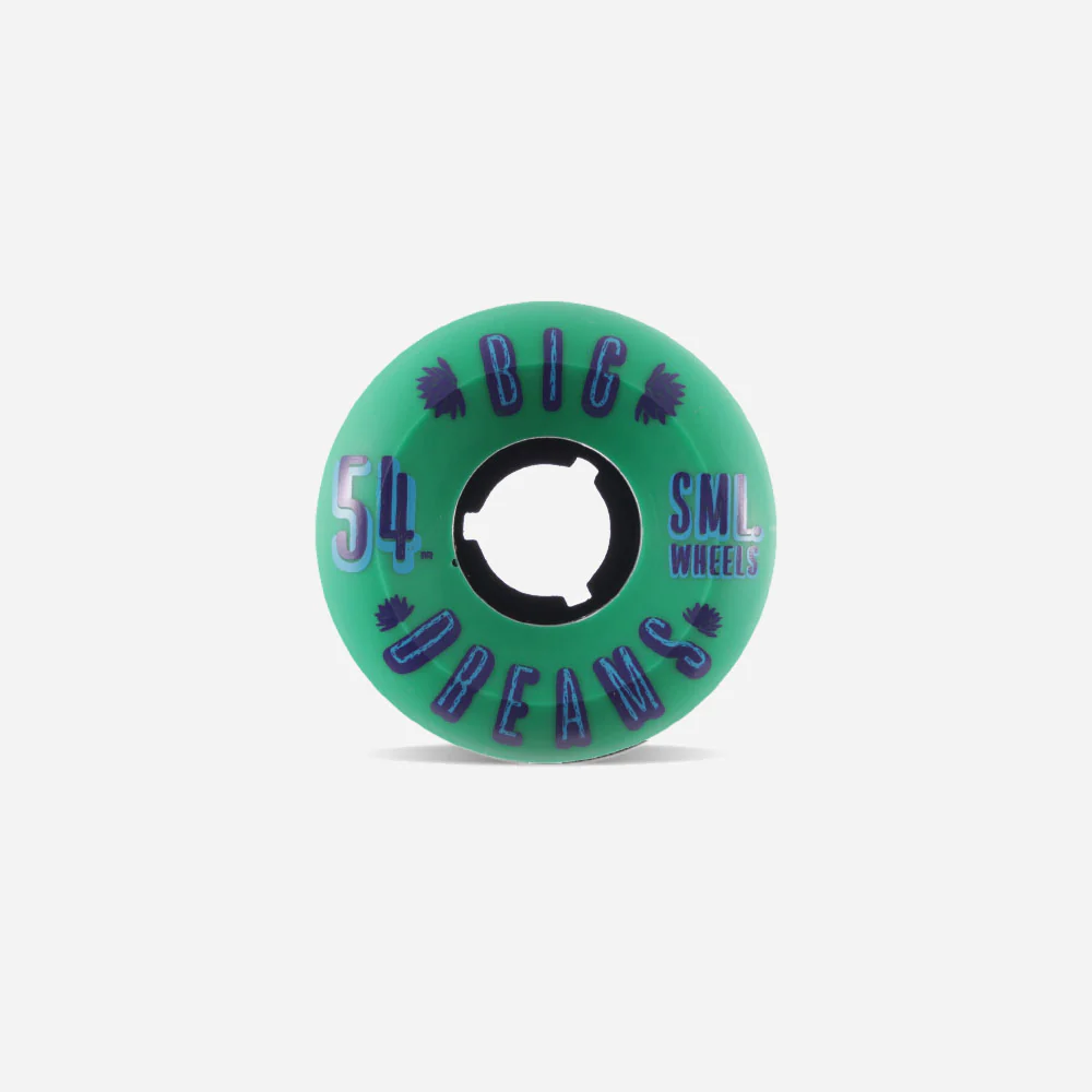 Jeu de 4 roues SML WHEELS pour skateboards fabriquées en uréthane blanche haute qualité, sérigraphiées sur une face. Ces roues à la dureté moyenne suffisamment souple pour cruiser et suffisamment dur pour faire des powerslides.