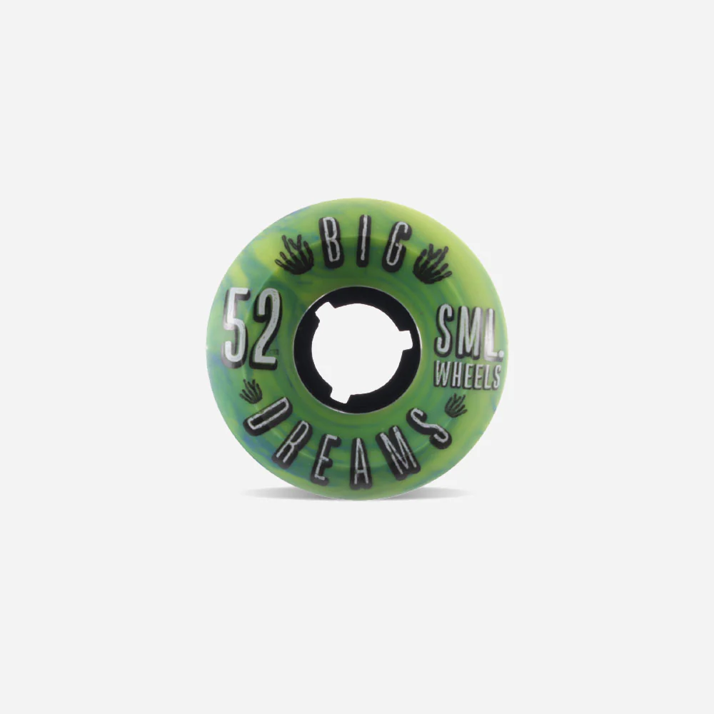 Jeu de 4 roues SML WHEELS pour skateboards fabriquées en uréthane blanche haute qualité, sérigraphiées sur une face. Ces roues à la dureté moyenne suffisamment souple pour cruiser et suffisamment dur pour faire des powerslides.