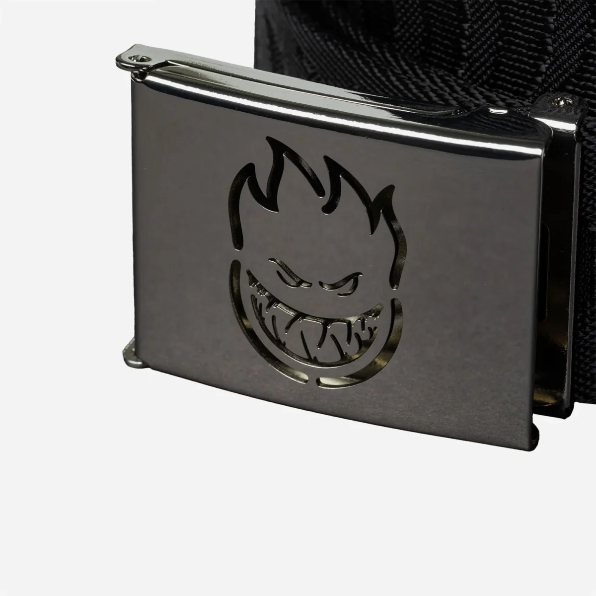 Ceinture classique Spitfire. Boucle métallique avec le classique logo Bighead découpé au laser. Taille unique ajustable.