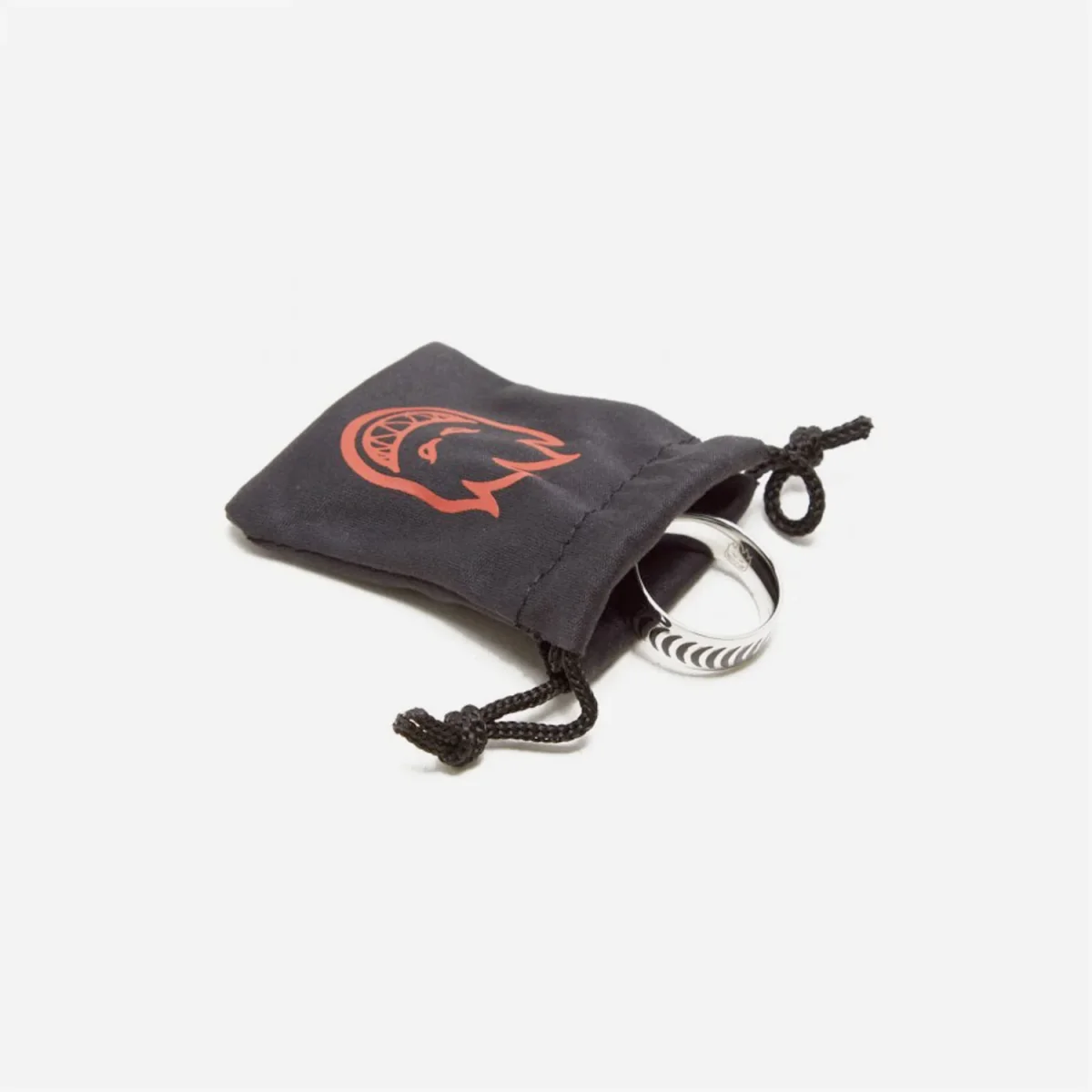Bague en acier inoxydable avec logo Spitfire gravé et livrée dans une pochette.