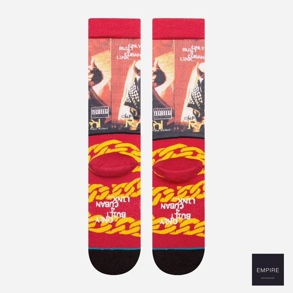 Chaussettes en hommage au leader du groupe de hip-hop Wu-Tang Clan originaire de Staten Island, New York City: Raekwon reprenant la pochette de son premier album solo de 1995 Only Built 4 Cuban Linx…