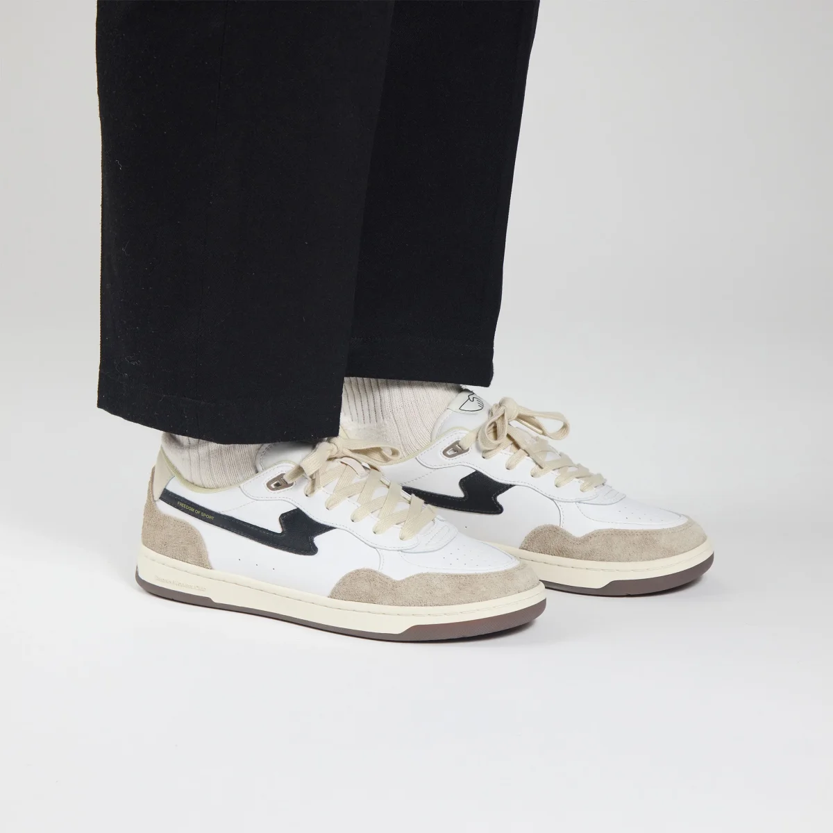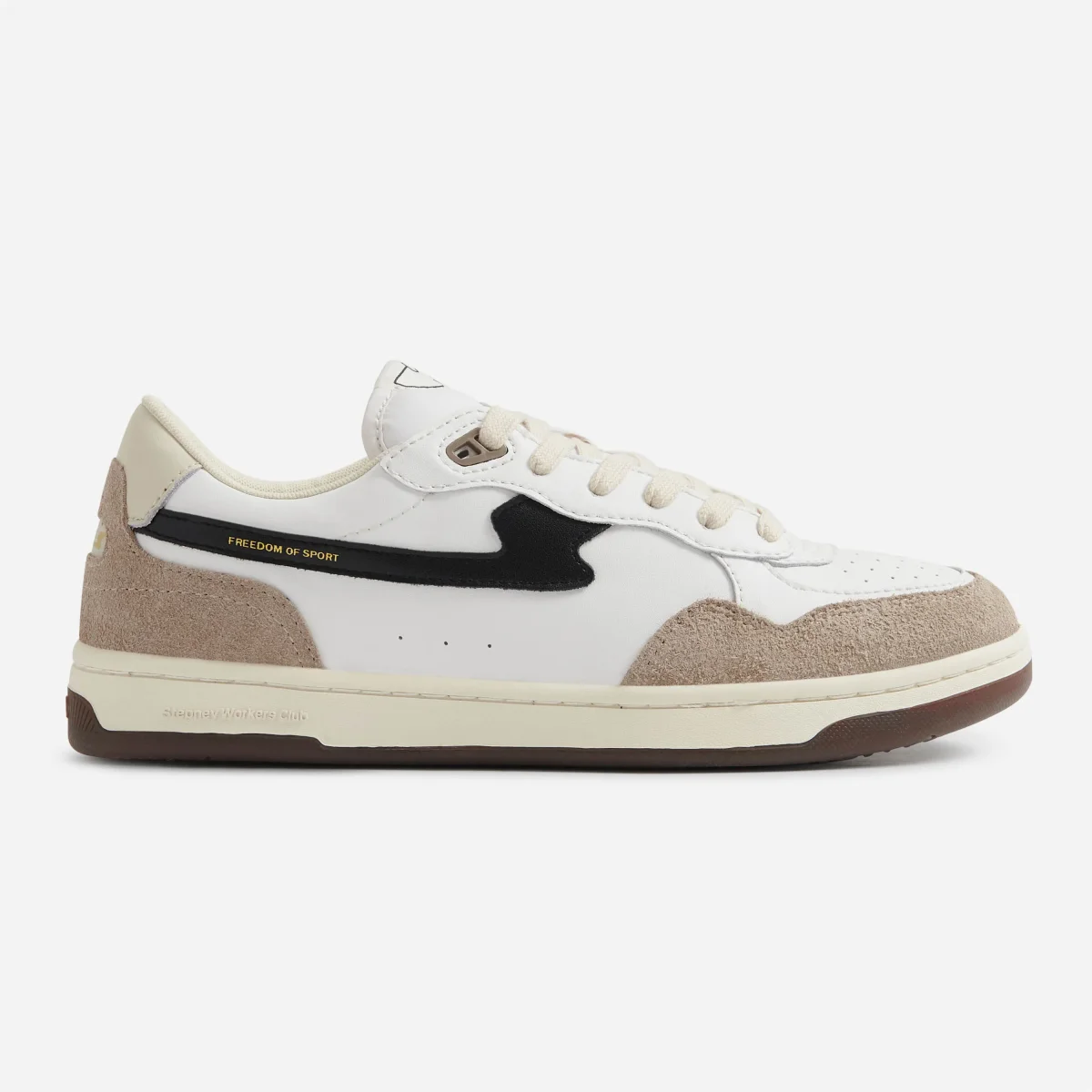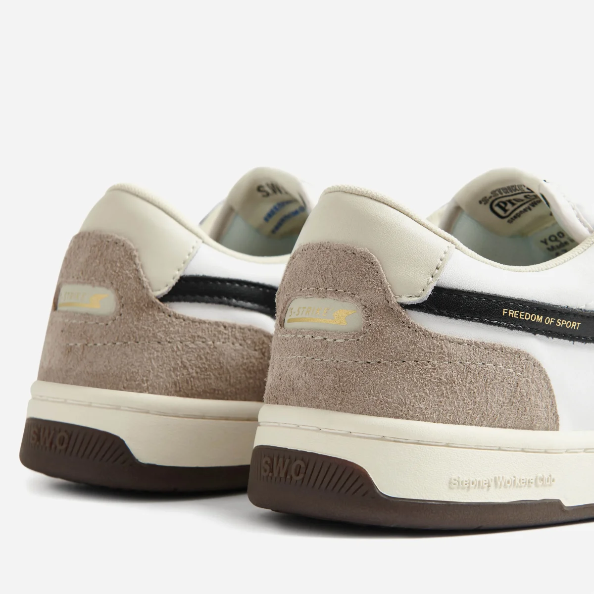 La nouvelle basket « Pro-Cup » du Stepney Workers Club est dotée d’une nouvelle semelle à profil bas, la rendant plus proche du sol, améliorant la réactivité, la flexibilité. et la rendant plus légère. L’empeigne est dotée d’un traitement spéciale abiotique « Geo-Merged » pour une esthétique authentique et subtilement adoucie. Les semelles sont soignées et non traitées. L’empeigne est composée d’un mélange de daim gris chaud et de cuir blanc et présente une fenêtre de marquage au talon, des détails d’œillets sportifs, une languette rembourrée confortable et une assise plantaire matelassée en peluche. Détails « S-STRIKE » en cuir contrasté avec messages de la marque en feuille d’or.