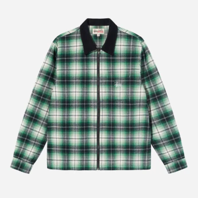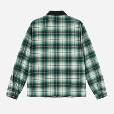 Chemise zippée à carreaux brossés avec col en velours côtelé. Fermeture à glissière métallique poignets à boutons œil de chat et ourlet plat. Finition avec fentes latérales de 2″ et broderie du logo Stüssy sur la poche de poitrine gauche.
