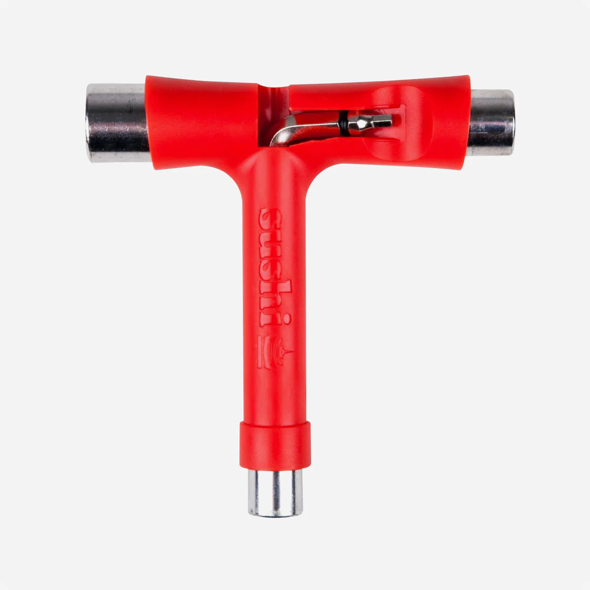 Outil complet pour monter, démonter et régler votre skateboard. En forme de T, il contient une clef pour les boulons ds kingpin, une clef pour les boulon d’axes et une clef pour le boulon des vis. Associé à une clef amovible avec un coté vis cruciforme et l’autre vis allen