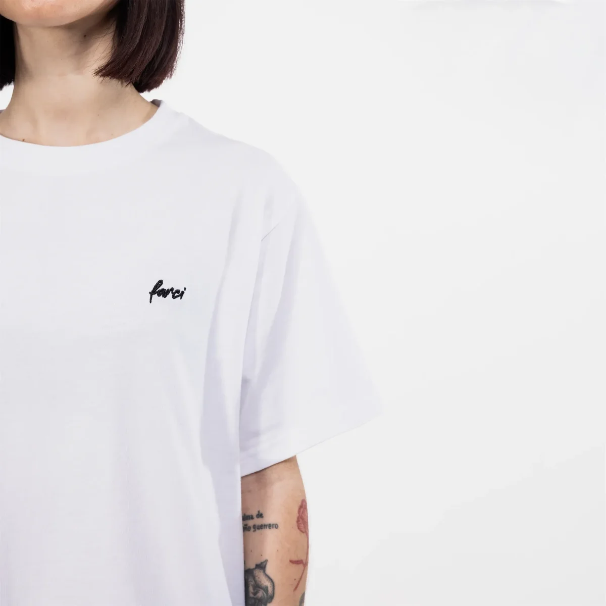 - La Face (Signature) : La sobriété est de mise à l’avant avec le logo « farci » brodé en noir contrastant sur le cœur.