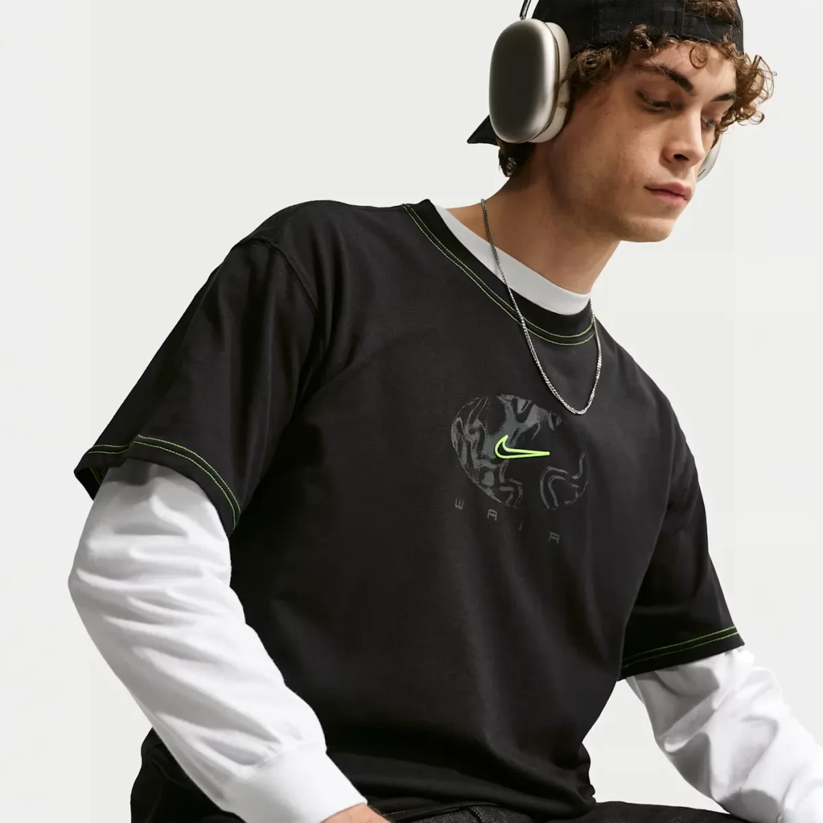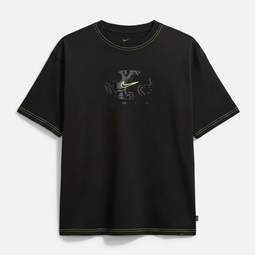 - Graphisme « WAIR » : Sur la poitrine, un logo exclusif mêlant le Swoosh et des formes organiques (évoquant un globe ou le Yin & Yang) surmonte le nom « WAIR » stylisé façon digital.