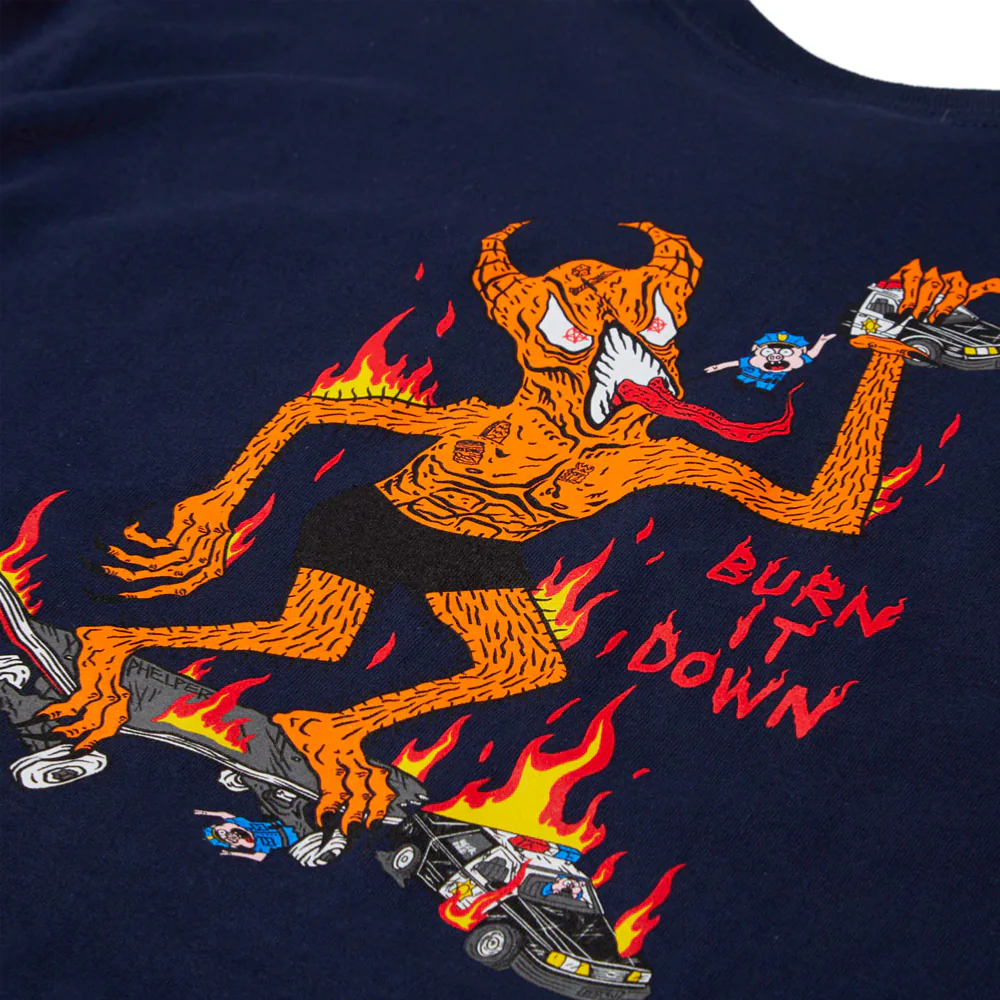 THRASHER – BURN IT DOWN TEE – Navy