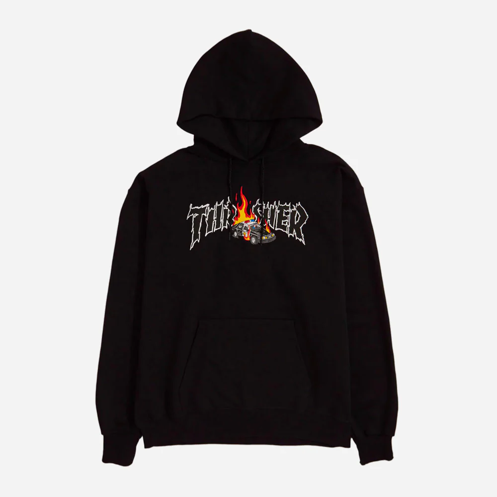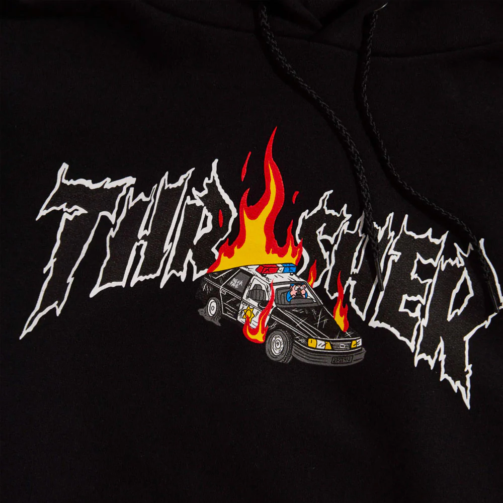 THRASHER – COP CAR HOODY – BlackSweat à capuche Thrasher, coupe classique droite, Visuel Thrasher imprimé sur le torse.