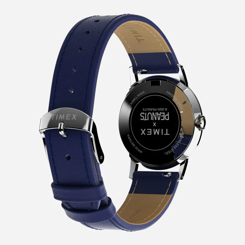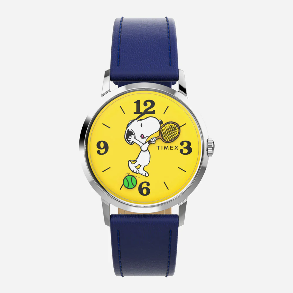 TIMEX – MARLIN® HAND-WOUND X SNOOPY TENNIS 34MM LEATHER STRAP WATCH – Blue Stainless Steel