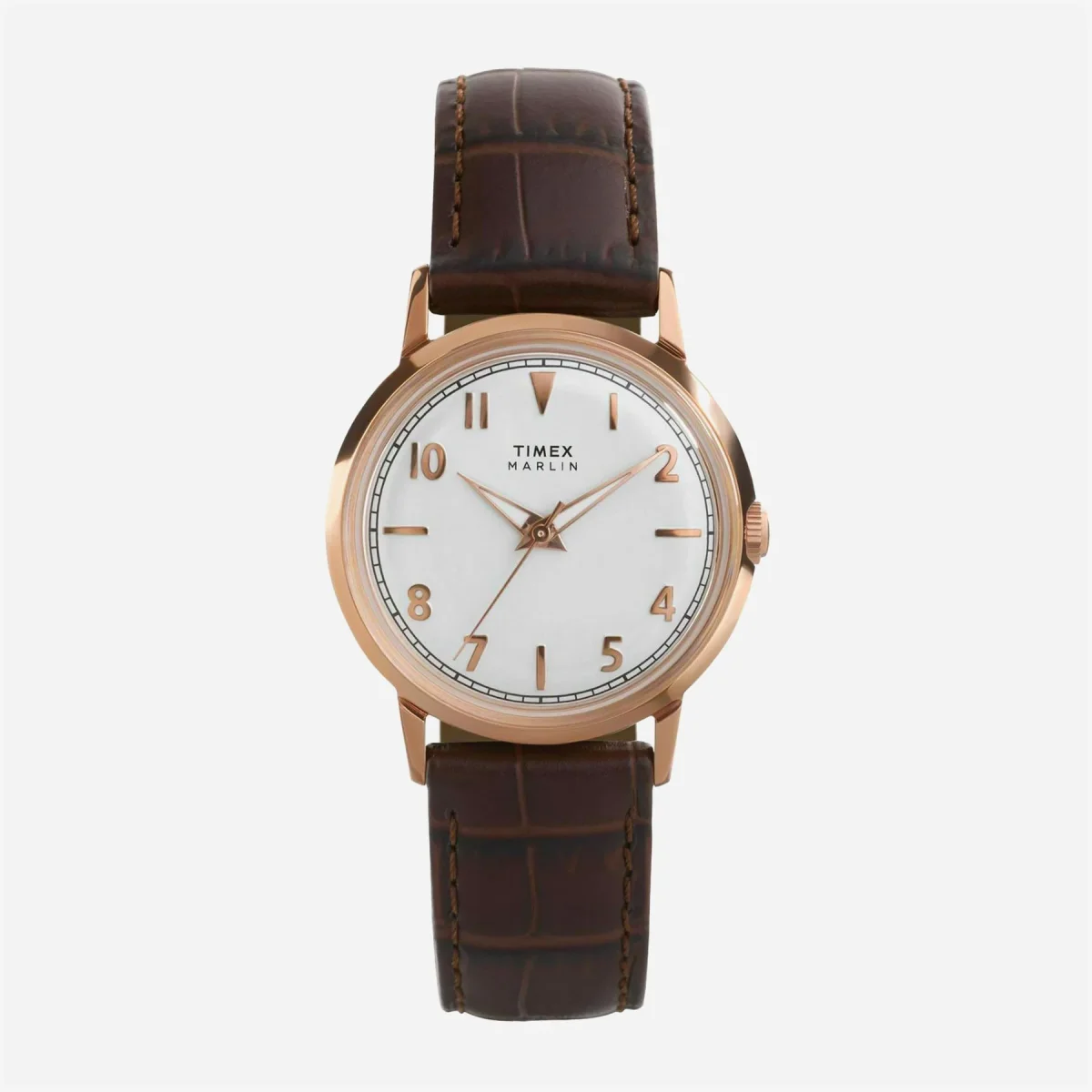 Timex – Marlin Quartz 34mm Leather Strap Watch – Silver White / Brown Croco
