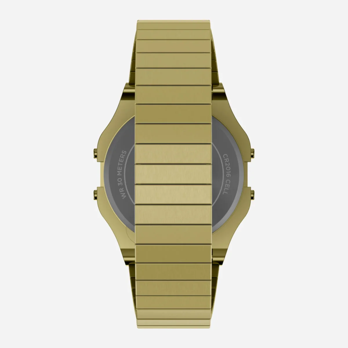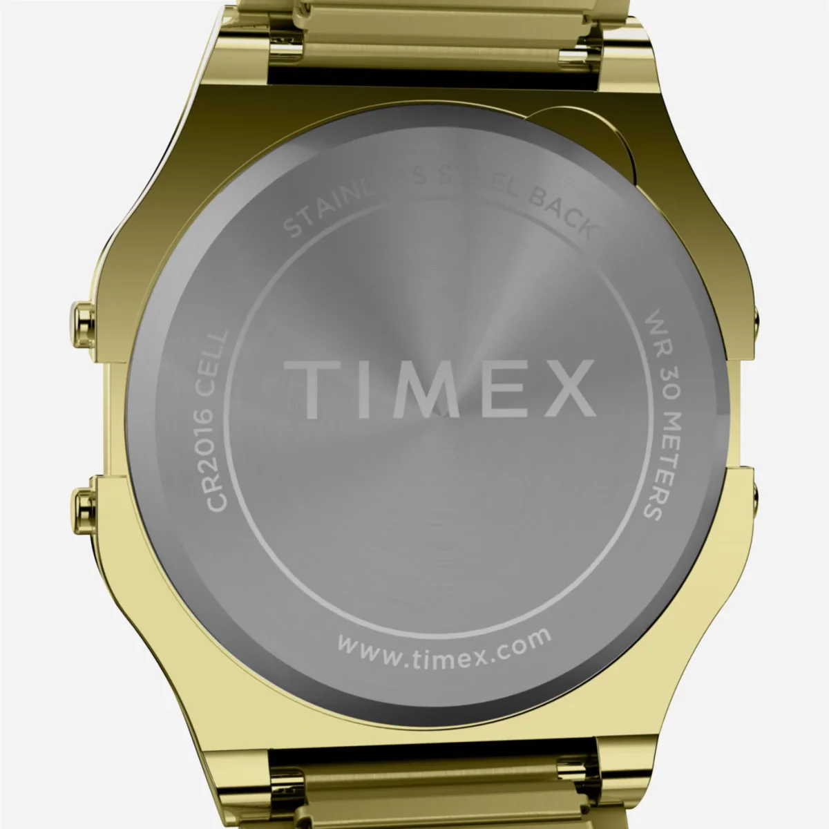 Retour vers le futur avec cette Timex T80. Elle rend hommage aux premières montres numériques à arriver sur le marché. Pour honorer ses premiers succès, Timex est fiers de réintroduire la T80 pour une toute nouvelle génération – une montre qui est à la fois un accessoire élégant et un appareil de chronométrage sérieux. Dotée d’un boîtier et d’une lentille élégants de couleur or, associés à un bracelet extensible Perfect Fit en acier inoxydable qui s’ajuste sans outil, cette amusante conception rétro comprend un affichage de la date, un chronomètre et une alarme.