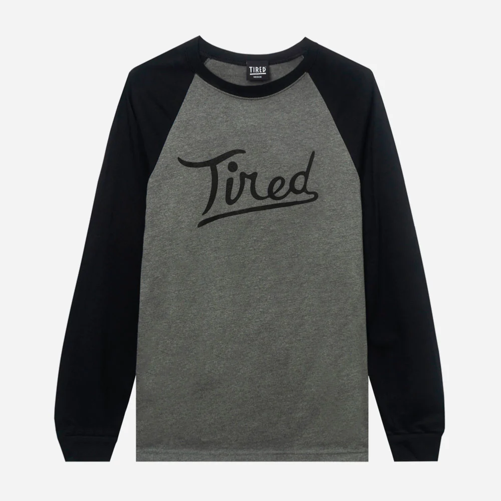 TIRED – THE ROUNDERS RAGLAN – GREY BLACK