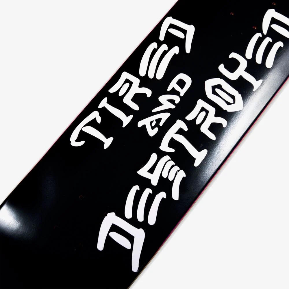 Planche de skateboard réalisée collaboration officielle entre Tired et Thrasher, fabrication en bois d’érable canadien 7-plis et résine époxy. Feuille de grip offerte.