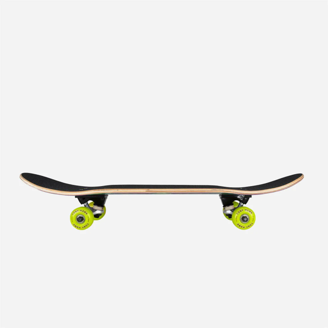 Skateboard complet Tony Hawk. Prêt à l’emploi avec Trucks, roues, roulements, grip et visserie. Shape classique.