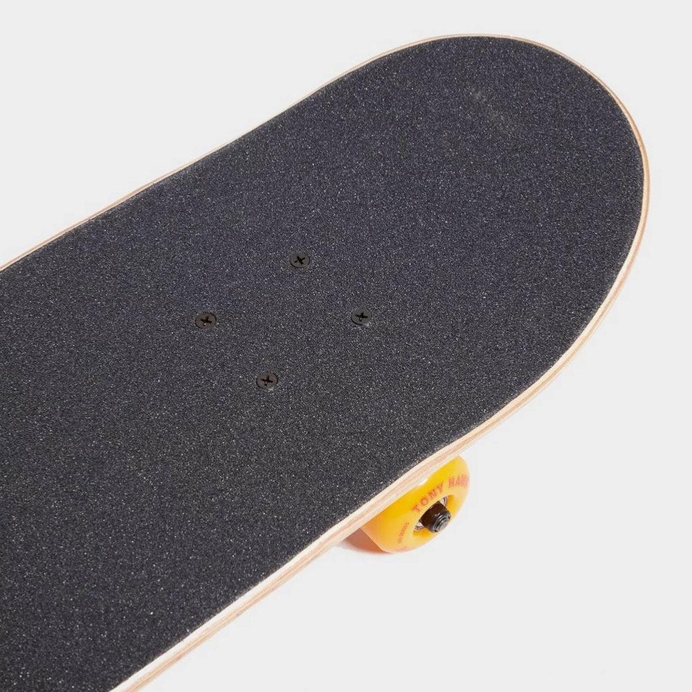 Planche de skateboard complète Tony Hawk. Prête à l’emploi avec Trucks, roues, roulements, grip et visserie. Shape classique.