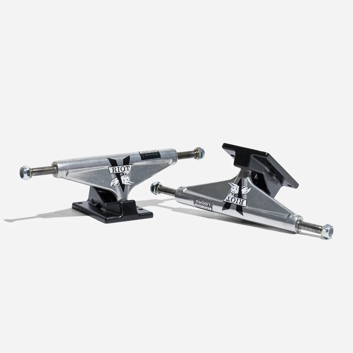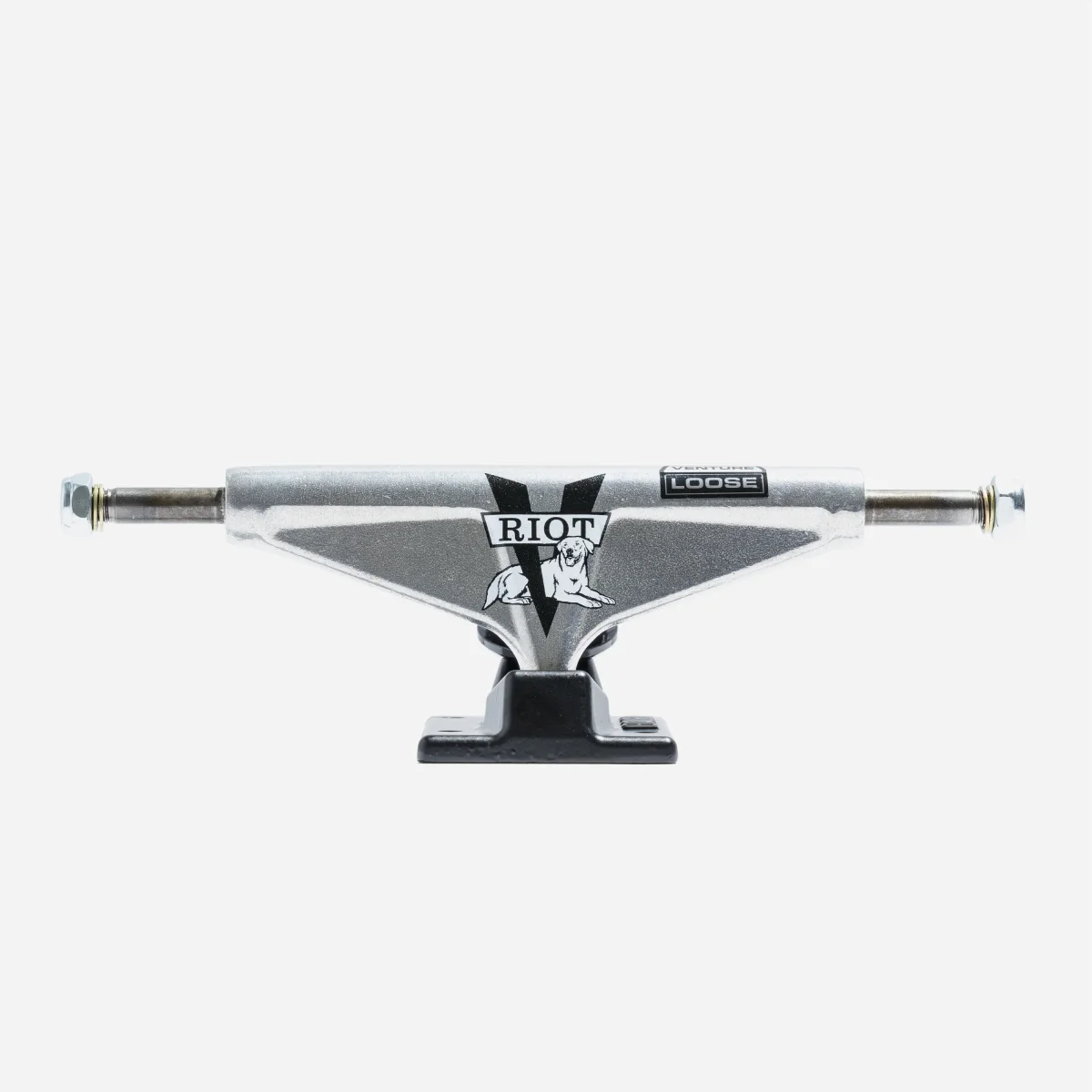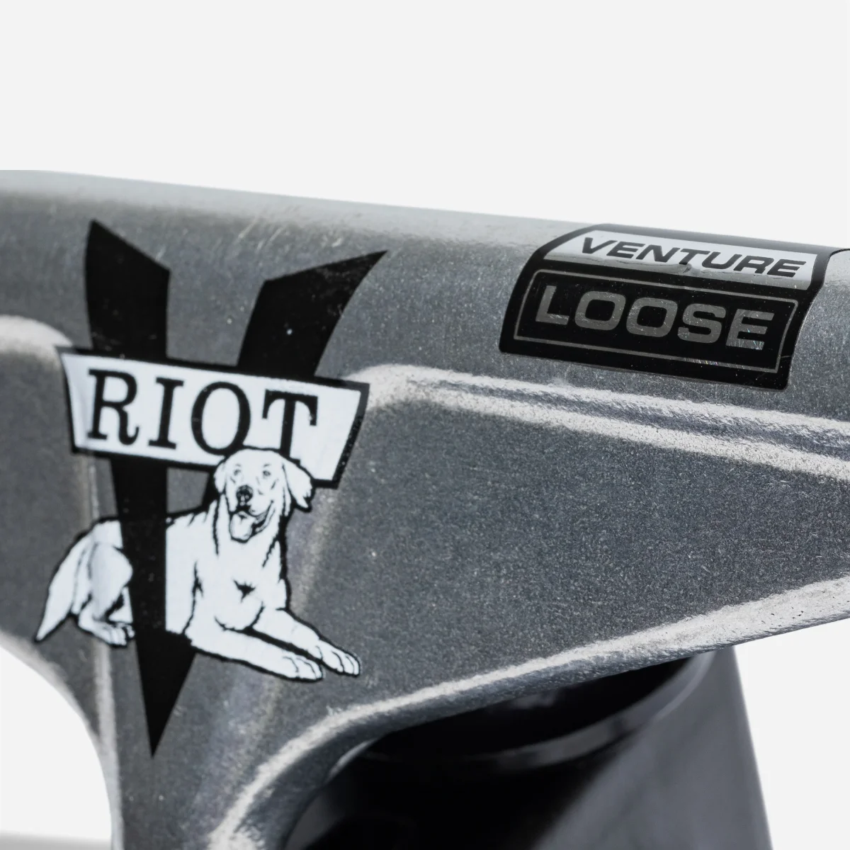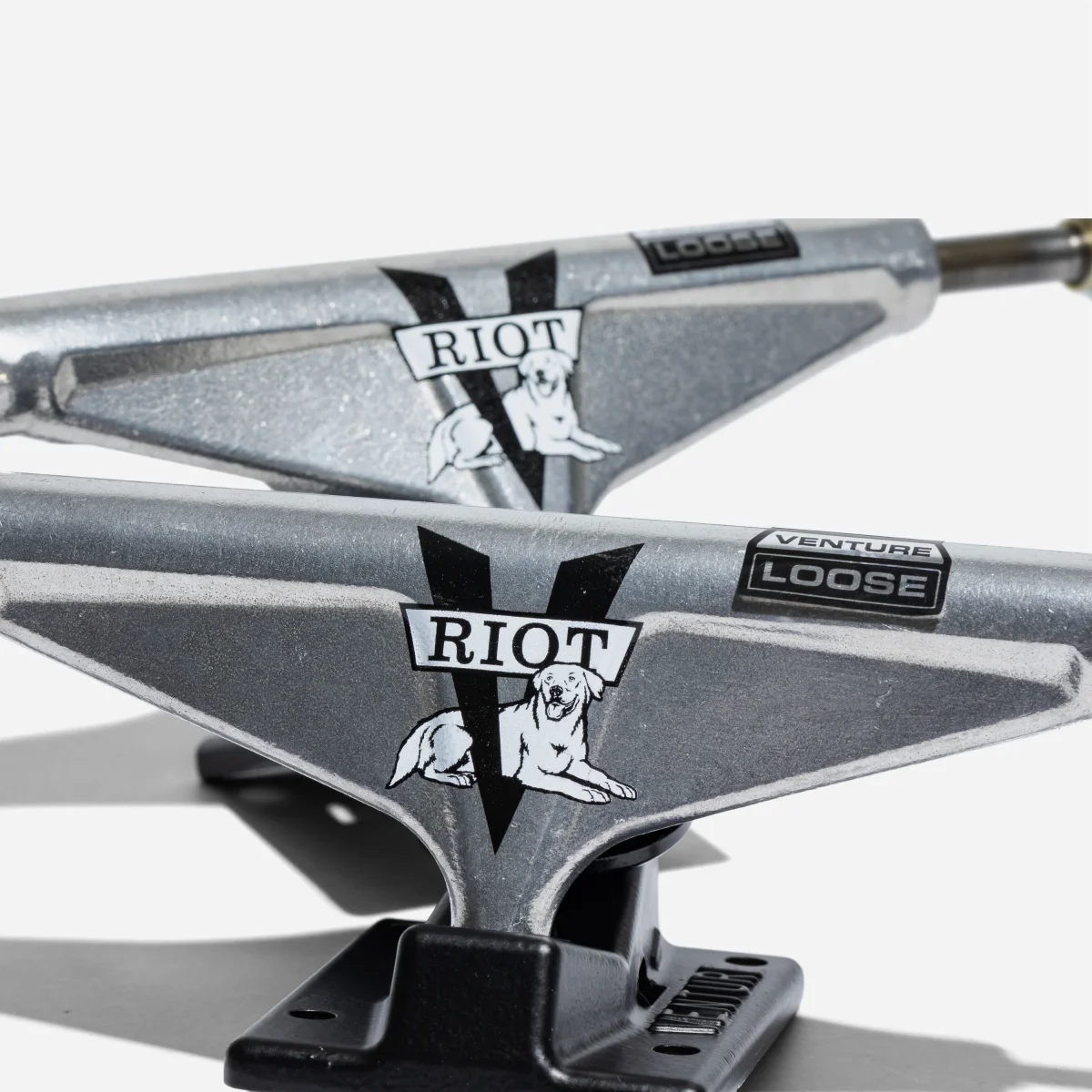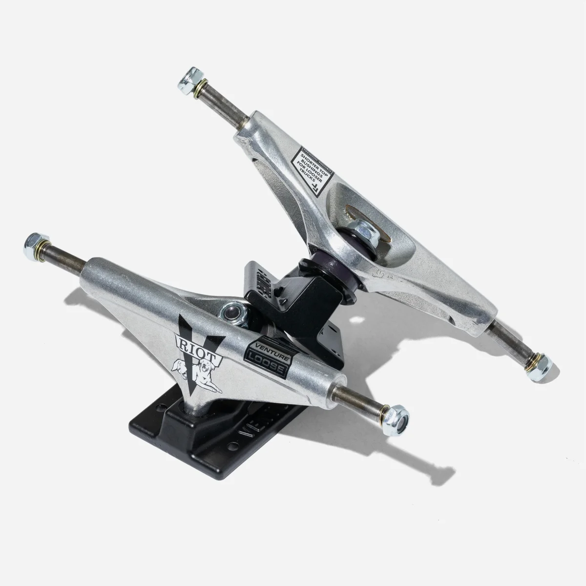 Le classique truck Venture dans une version exclusive réalisée avec le skateshop Bordelais, Riot. Finition du truck poli à la machine avec un rendu lustré, embase noire mat et logo Venture x Riot sérigraphié sur le hanger.