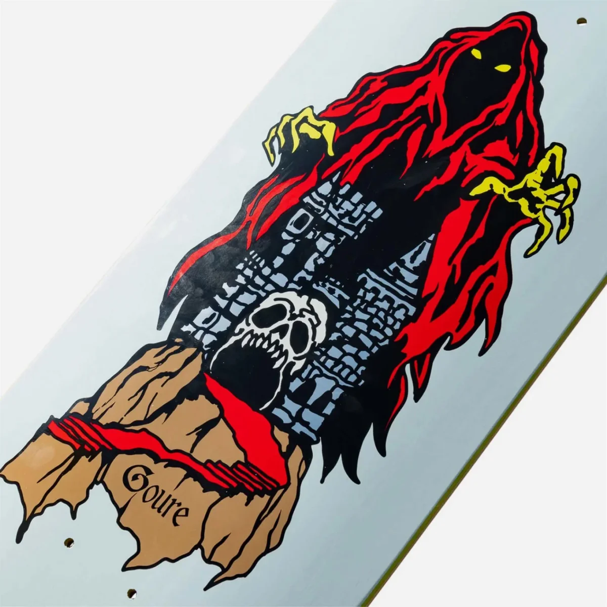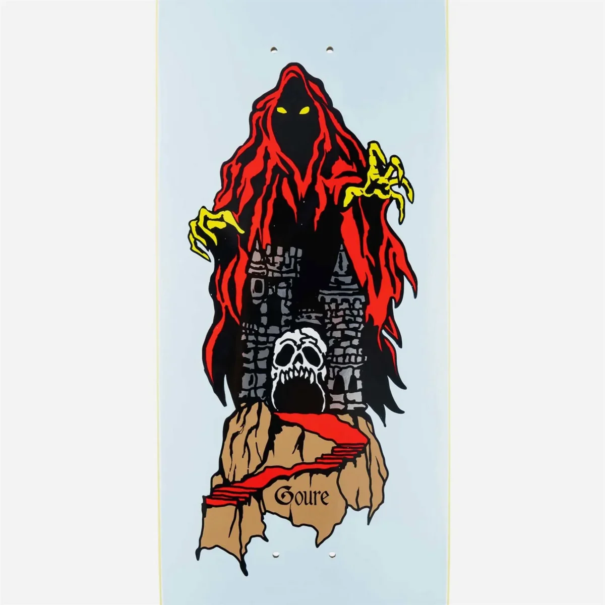 Planche de skateboard Welcome, Castle. Shape spécial Moontrimmer 2.0. Pro-modèle d’Aaron Goure. Visuel par Jason Celaya.