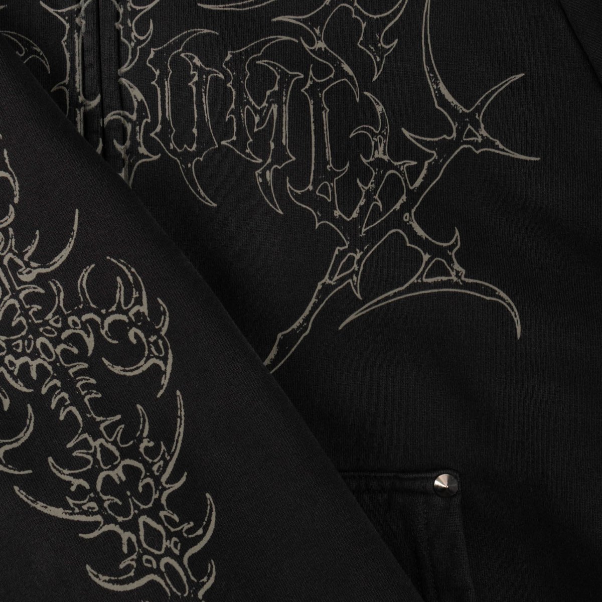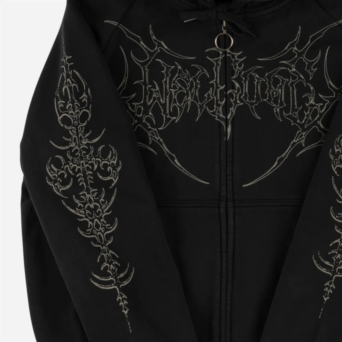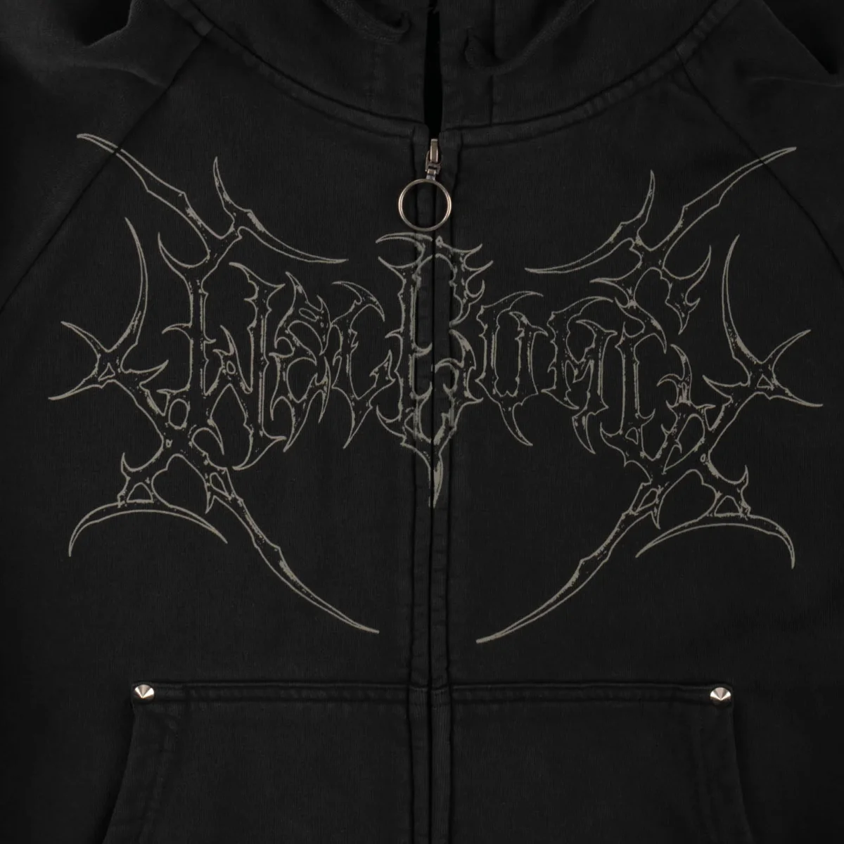 Plongez dans l’univers gothique et audacieux de Welcome Skateboards avec ce hoodie zippé cropped. Le Grapple Hoodie se distingue par sa coupe courte et ses motifs graphiques ton sur ton, inspirés de l’esthétique métal et underground. Fabriqué en coton épais, il assure chaleur, confort et robustesse. Sa fermeture zippée avec tirette anneau métallique et ses poches kangourou renforcées par des rivets apportent une touche fonctionnelle à ce vêtement au style affirmé, parfait pour ceux qui veulent allier streetwear contemporain et influences dark avec assurance.