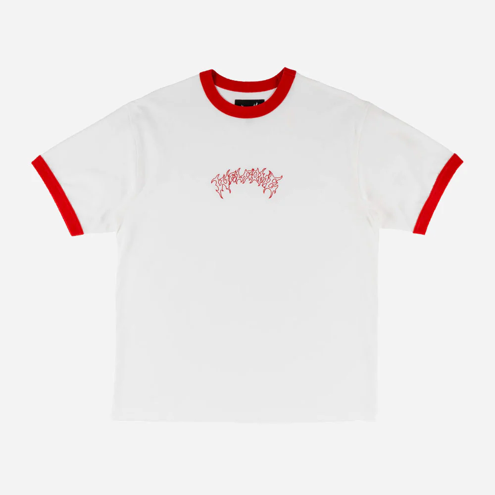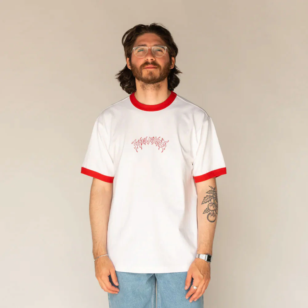 WELCOME SKATEBOARDS – BARB SS RINGER TEE – White Red